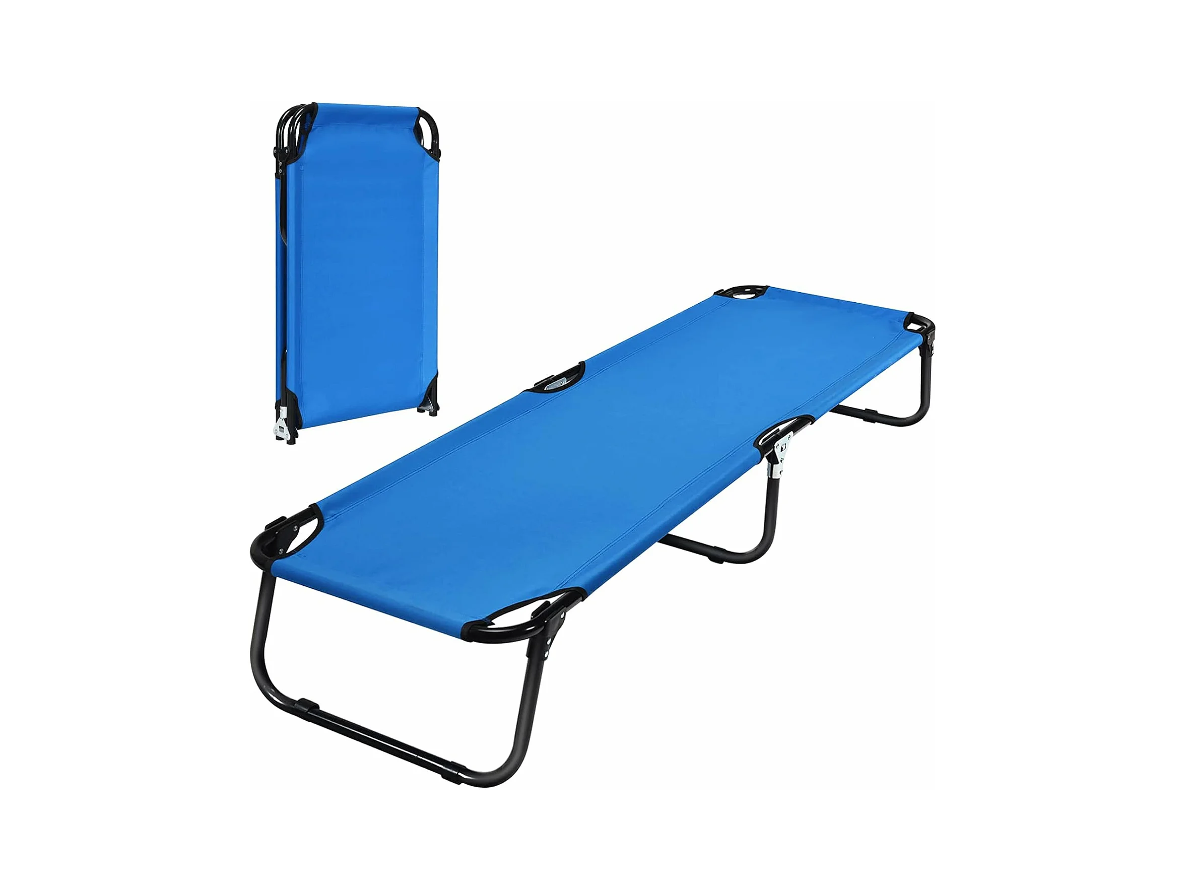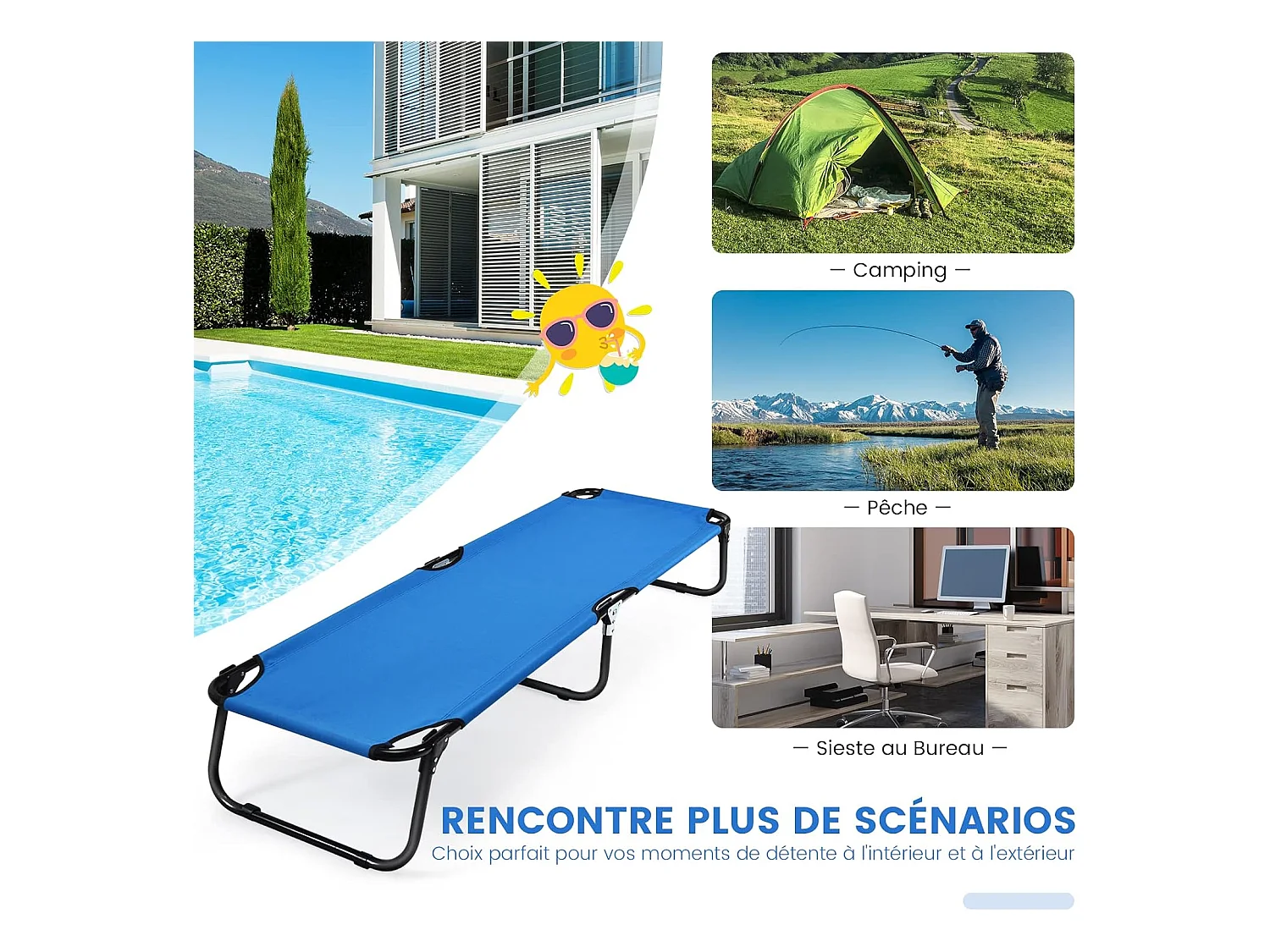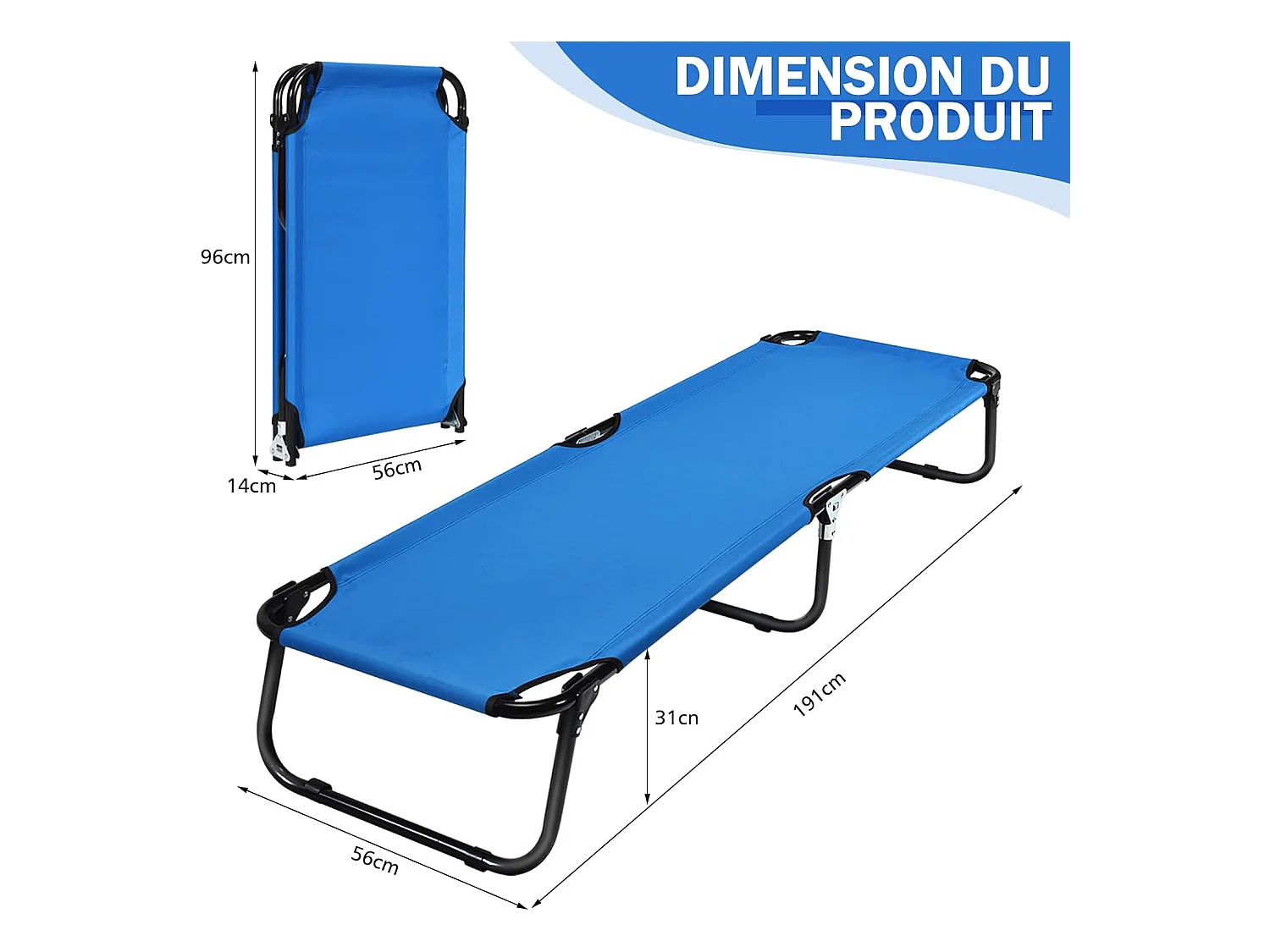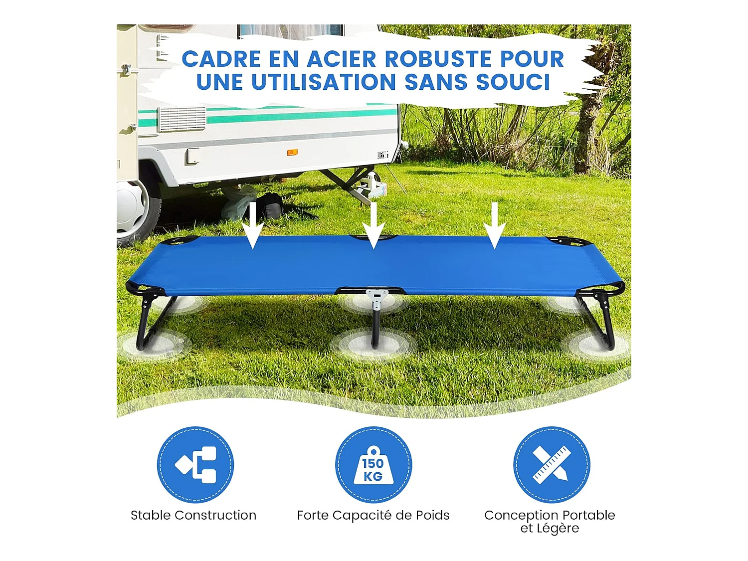 Bain de soleil Lit de Camp Pliable en Tissu et velours Oxford avec Tubes Métalliques Épaissis, Compatible Sac de Couchage, 190x56x30 cm, Bleu, 150kg