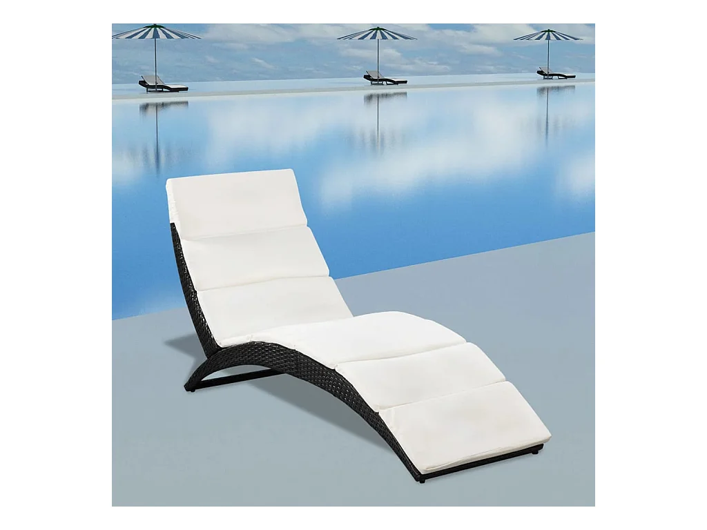 Bain de soleil pliable avec coussin Résine tressée Noir SEF95085