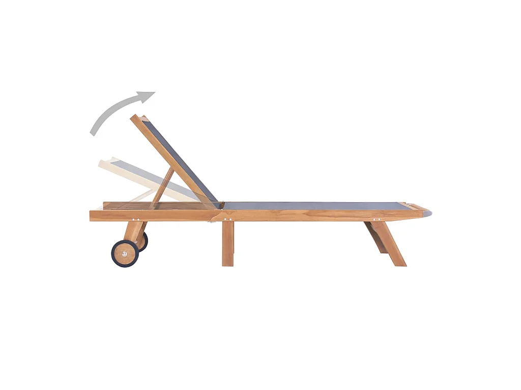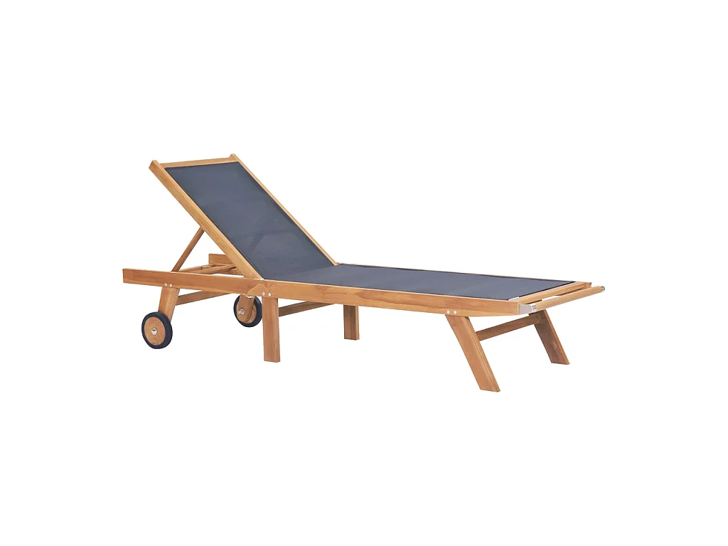 Chaise longue pliable avec roulettes Teck massif et textilène