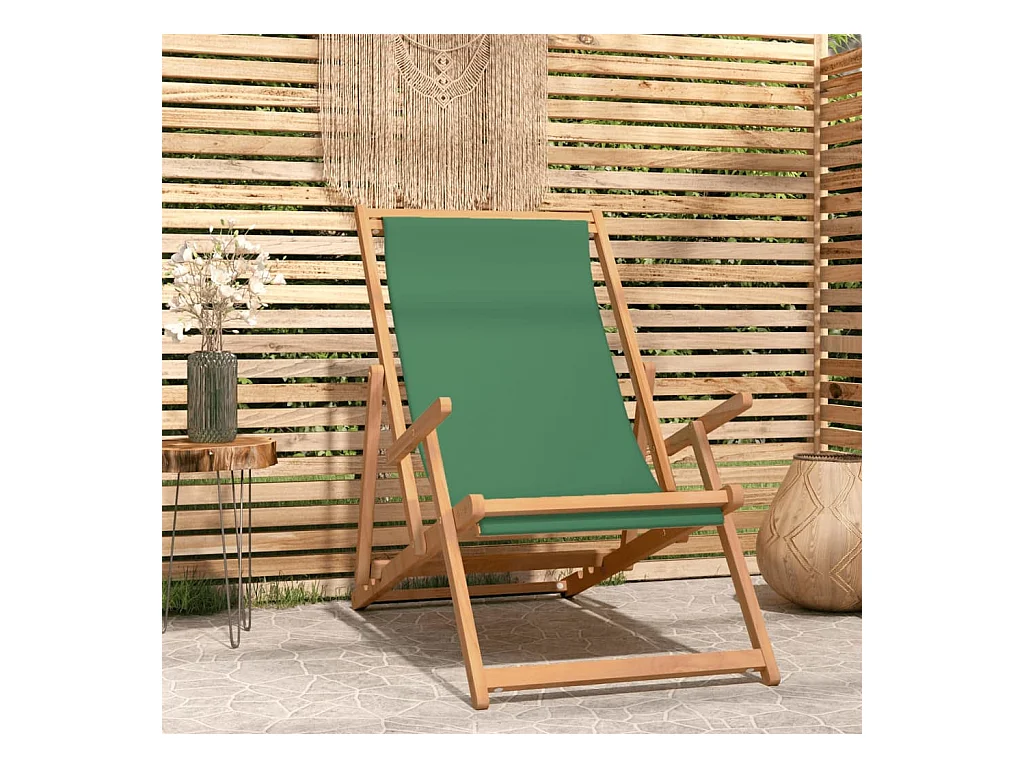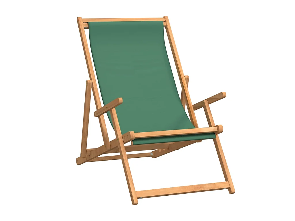 Bain de soleil pliable Bois de teck solide Vert SEF31246