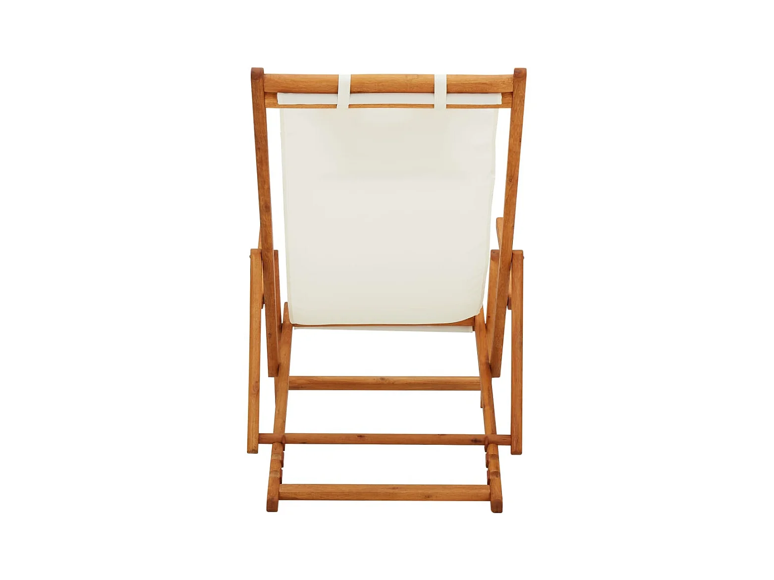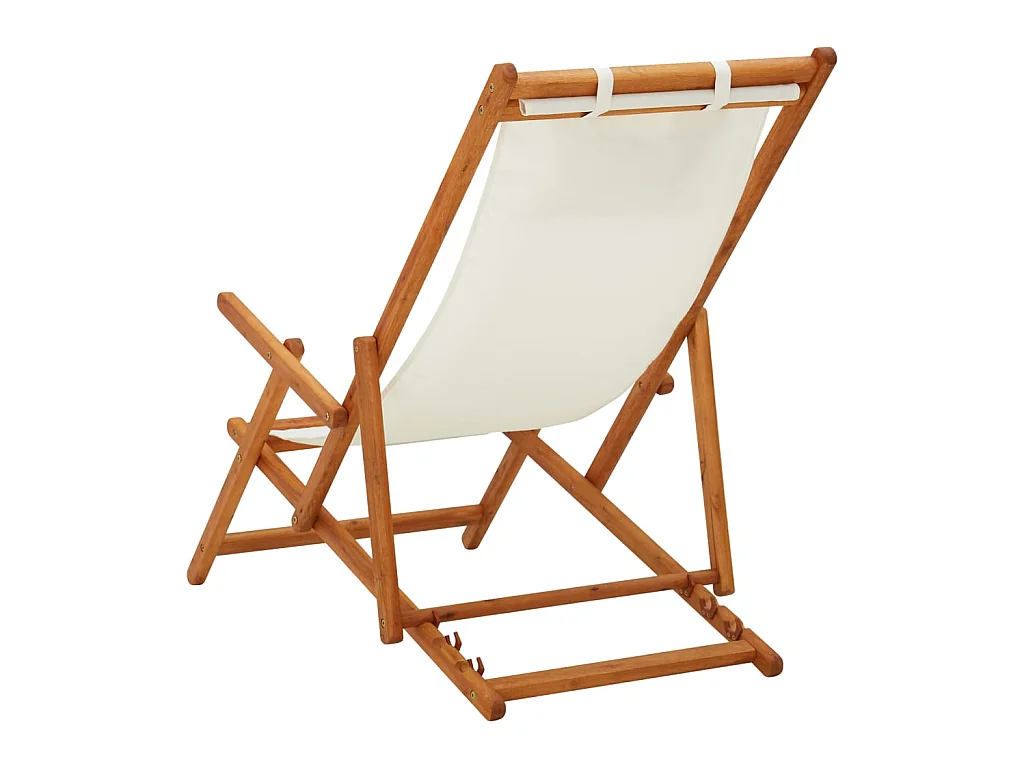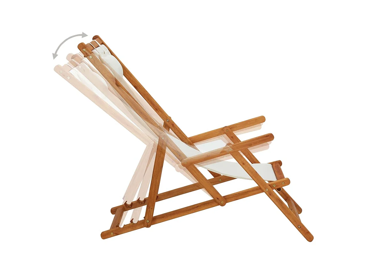 Bain de soleil pliable de plage Bois d'eucalyptus solide et tissu Crème SEF94850