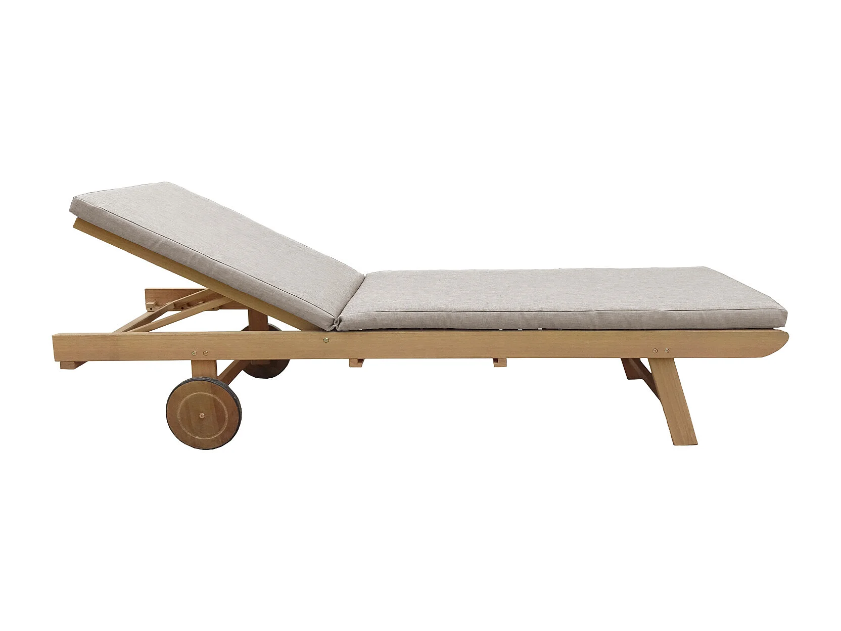 Bain de soleil pliant en acacia KANAWA - coussin sable - HAPPY GARDEN