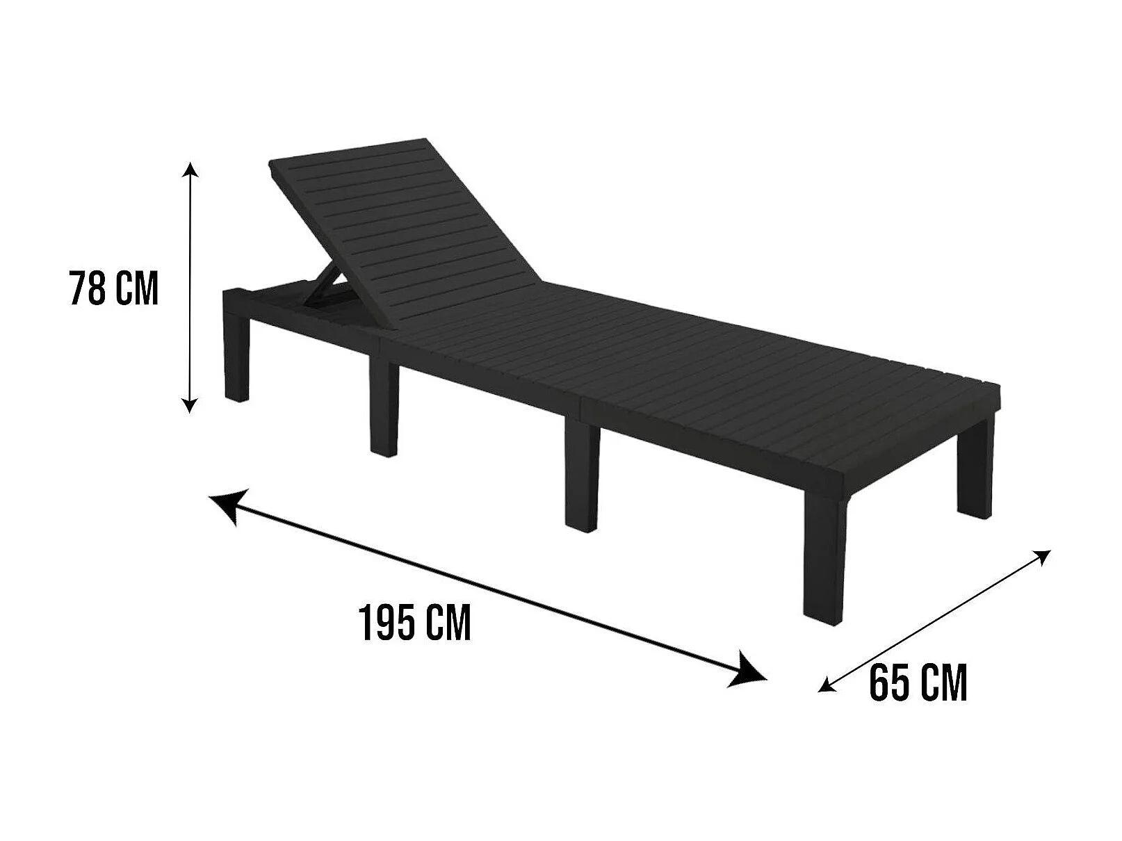 Chaise longue Dazzol, Chaise longue de jardin réglable, Chaise longue d'extérieur, 100% Made in Italy, 195x65h78 cm, Anthracite