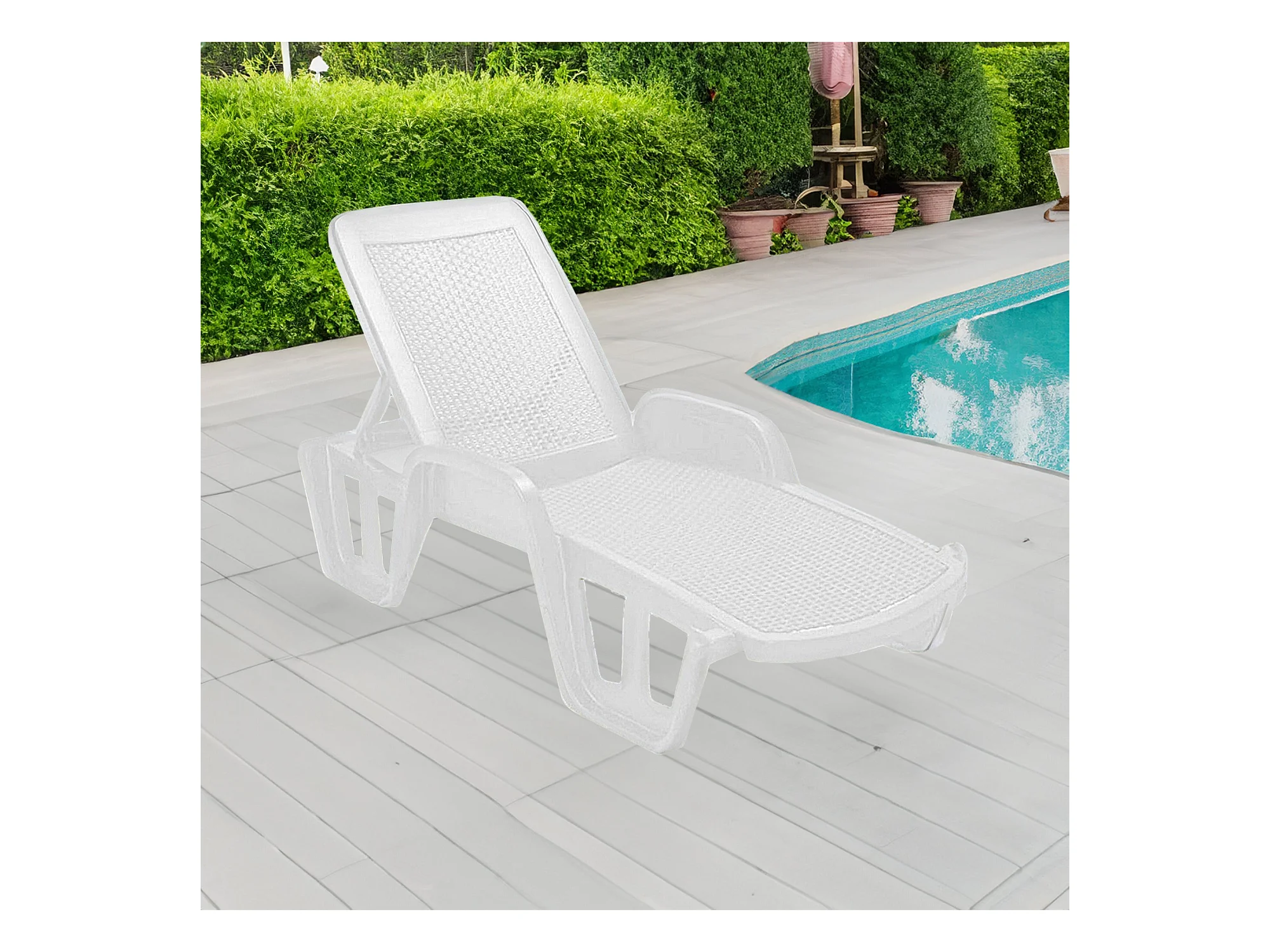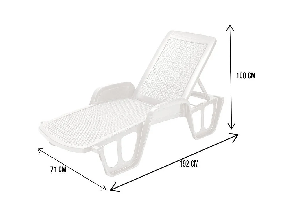 Chaise longue Milano, Chaise longue de jardin réglable avec accoudoirs, Chaise longue d'extérieur, 100% Made in Italy, 192x71h100 cm, Blanc