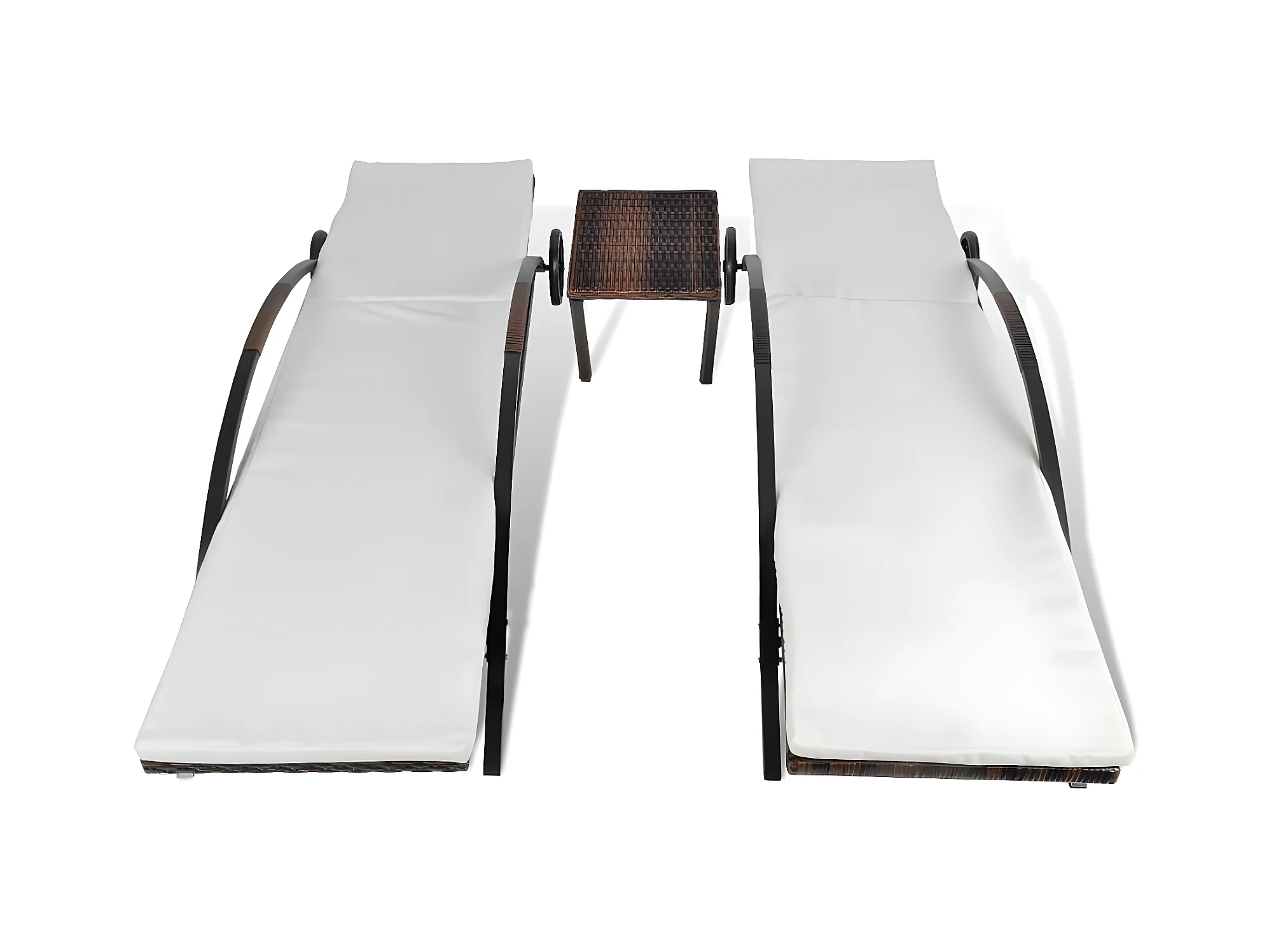 Chaises longues lot de 2 avec table résine tressée marron