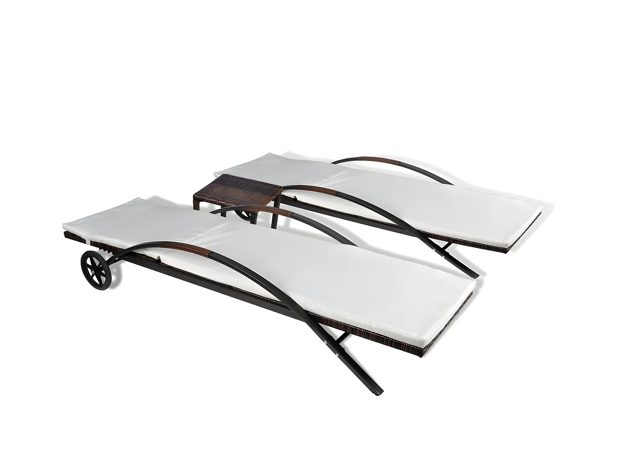 Bains de soleils 2 pcs avec table Résine tressée Marron SEF65933