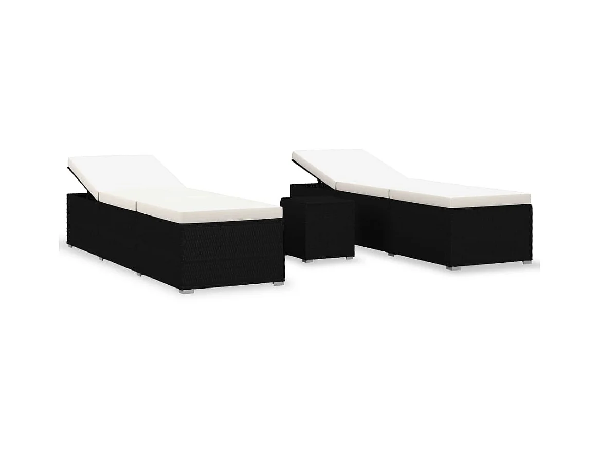 Bains de soleils avec table Résine tressée Noir SEF81908