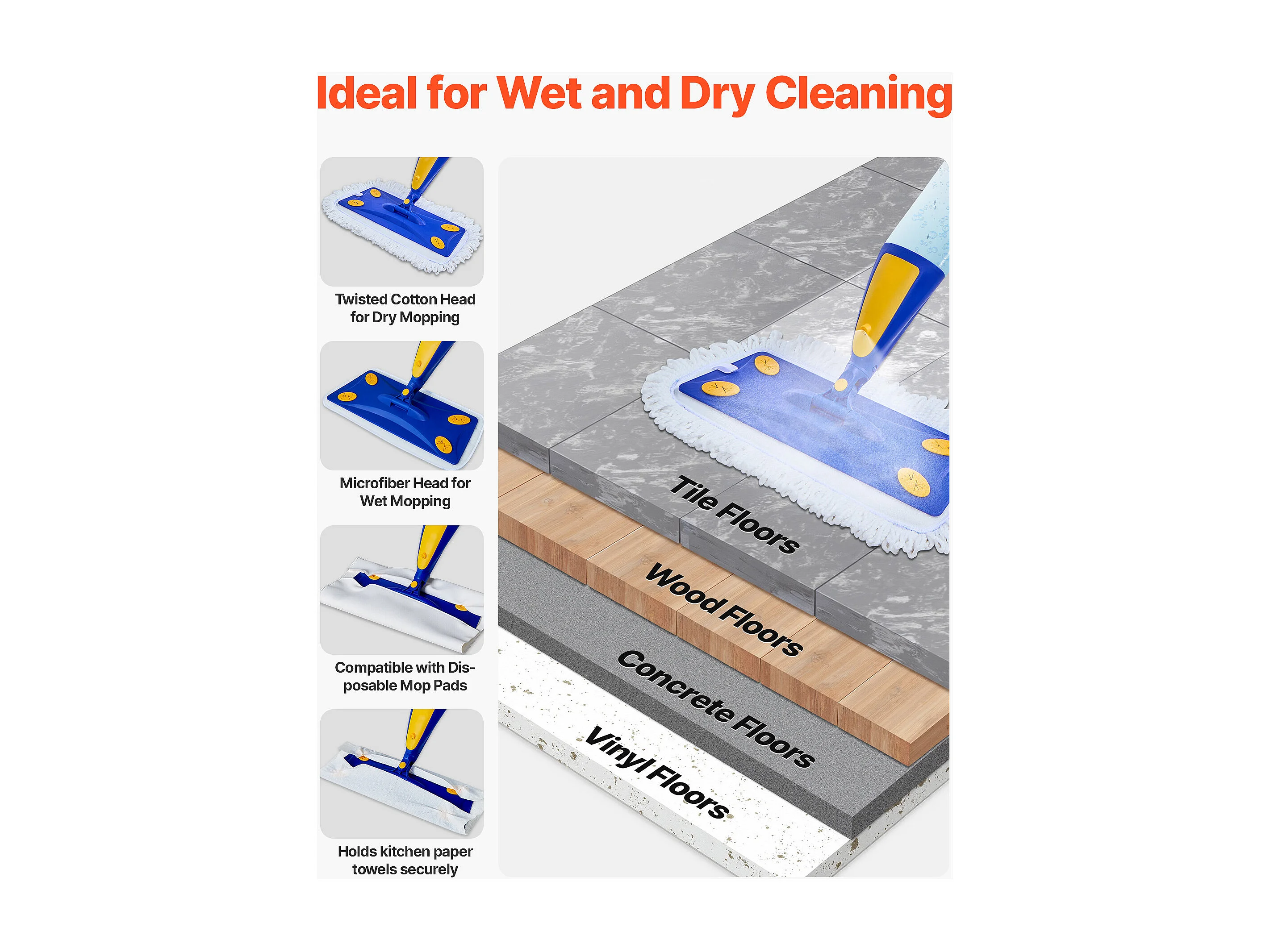 Balais Serpillère Vaporisateur SucceBuy, Balai Lave Sol avec 3 Tampons Lavables en Microfibre et en Coton Torsadé, Réservoir d’Eau Rechargeable 800 mL