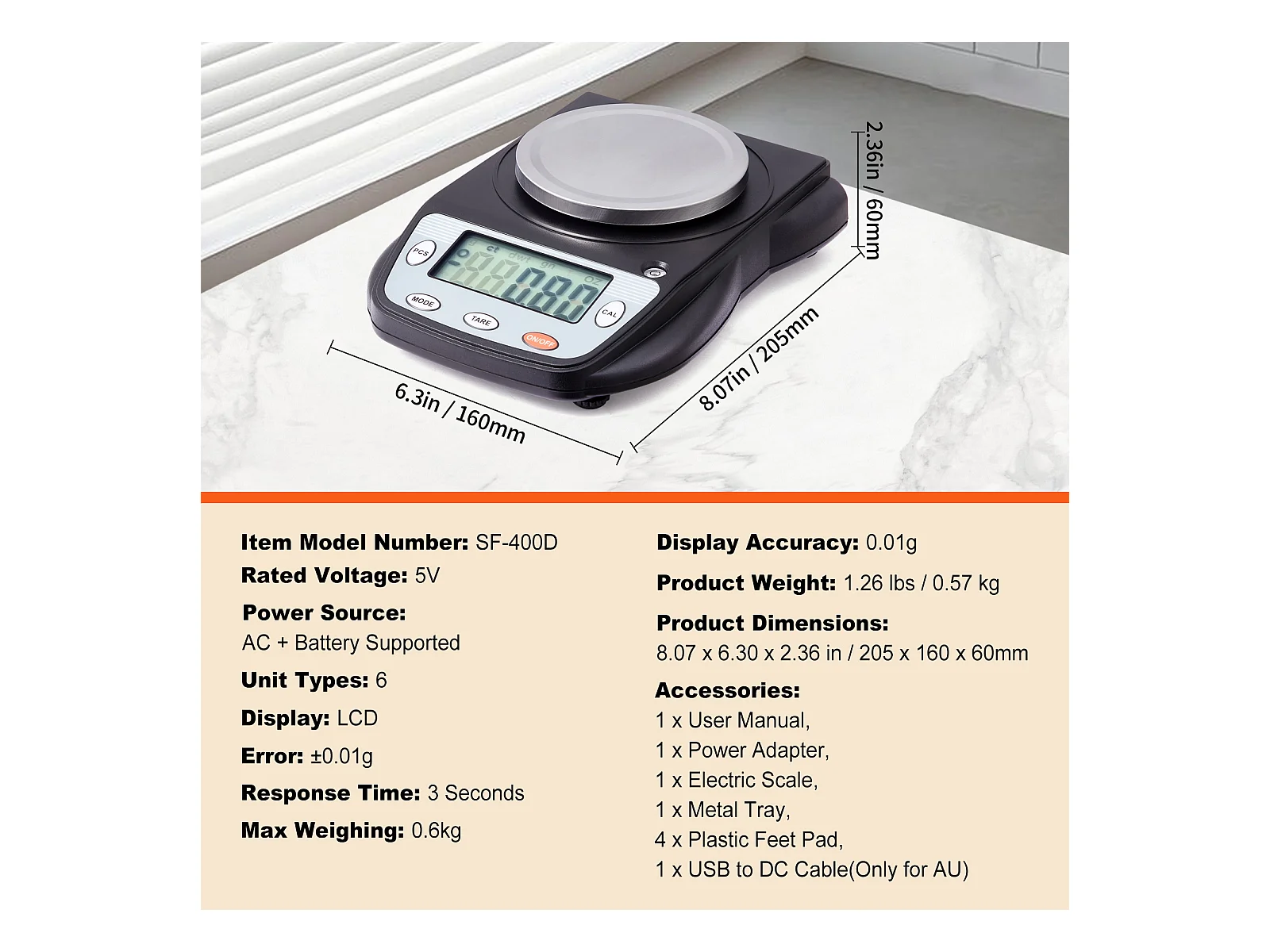 Balance Analytique SucceBuy 600 g x 0,01 g, Conversion de 6 Unités, Électronique, pour des Mesures Précises, Précision Électronique