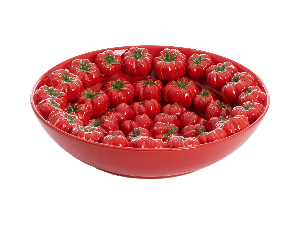 Saladier Basque Bleu 26cm Nova Styl - Porcelaine Blanche - Décor Rouge et Bleu