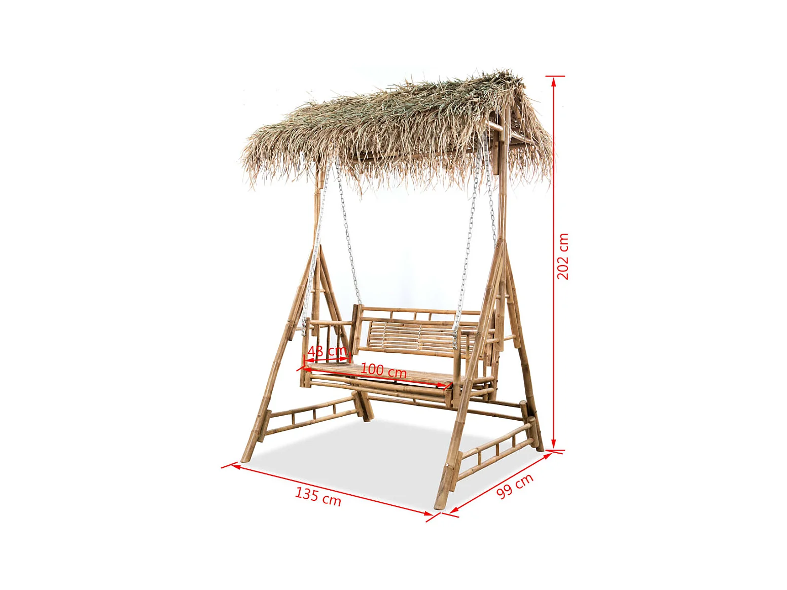 Balancelle à 2 places avec feuilles de palmier Bambou 202 cm