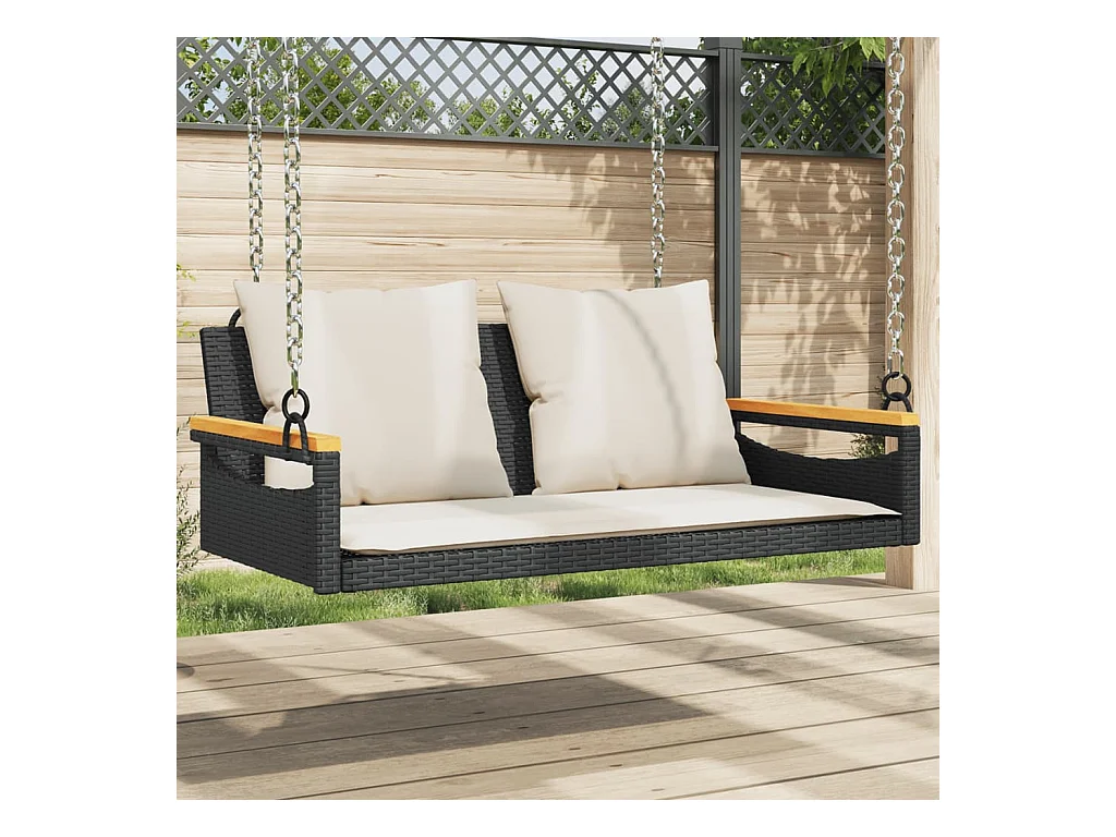Balancelle avec coussins noir 119x56x48 cm résine tressée