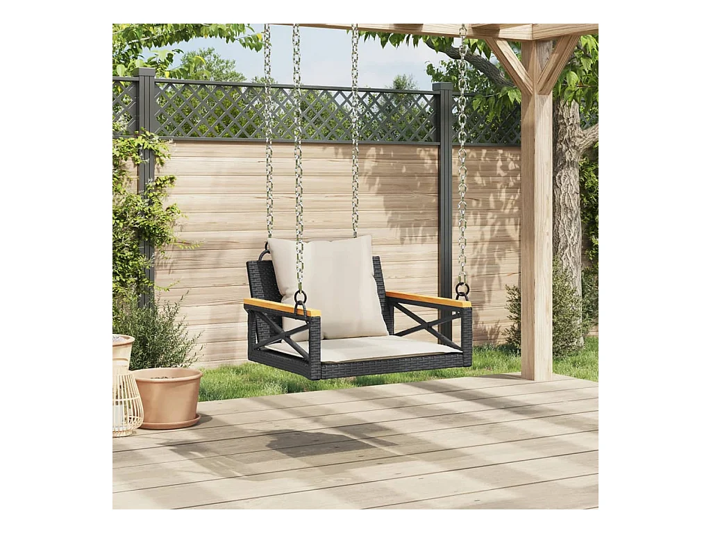 Balancelle avec coussins noir 63x62x40 cm résine tressée