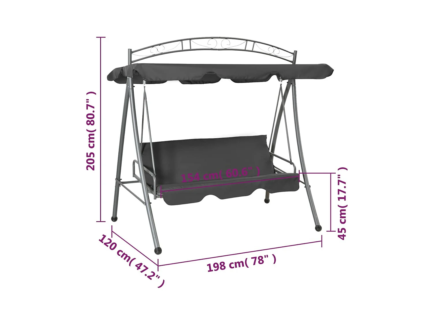 Balancelle convertible à auvent Anthracite 198x120x205 cm Acier