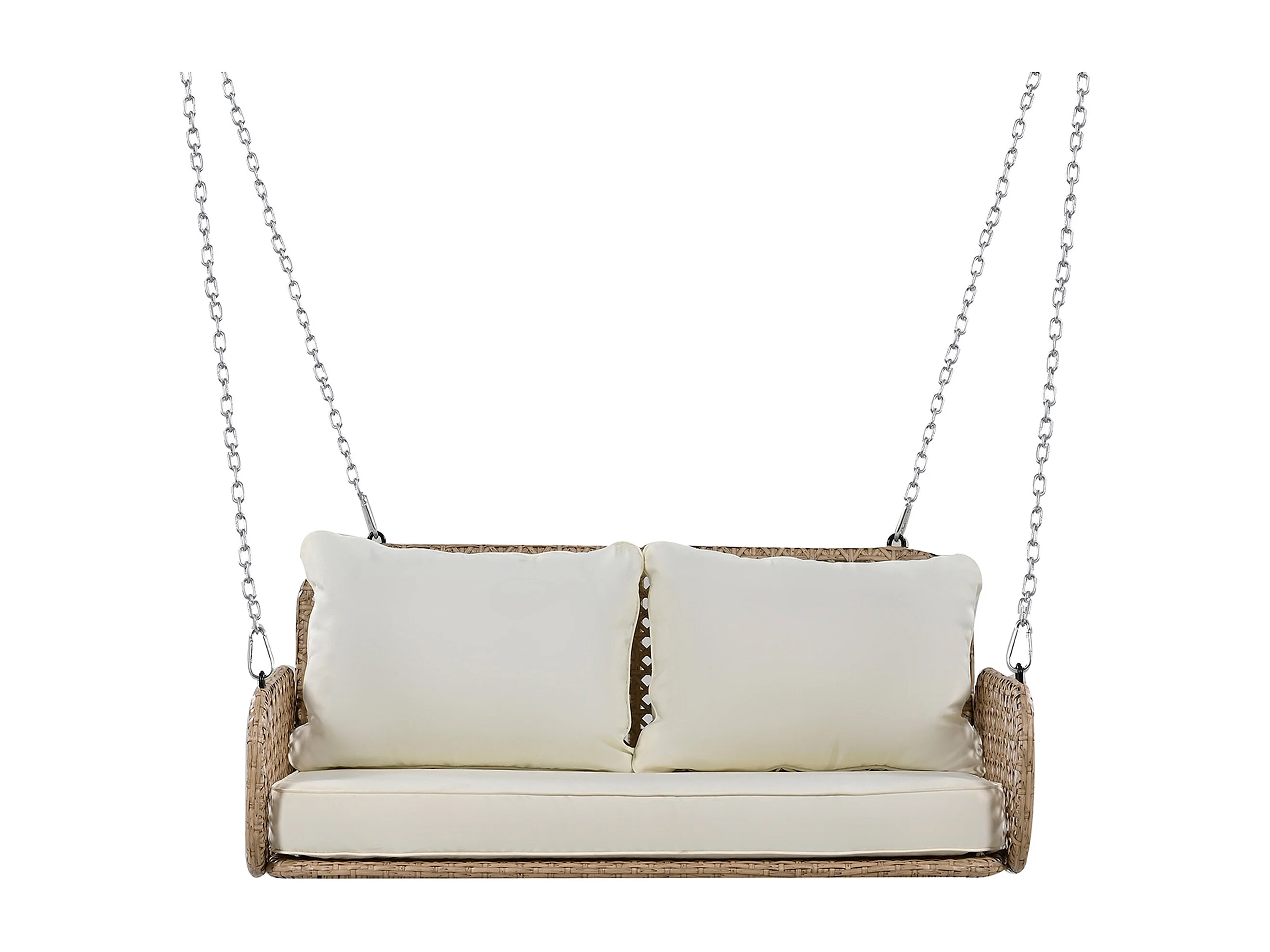 Balancelle de jardin 2 place en rotin PE avec coussins et 2 chaînes 240 cm - Beige