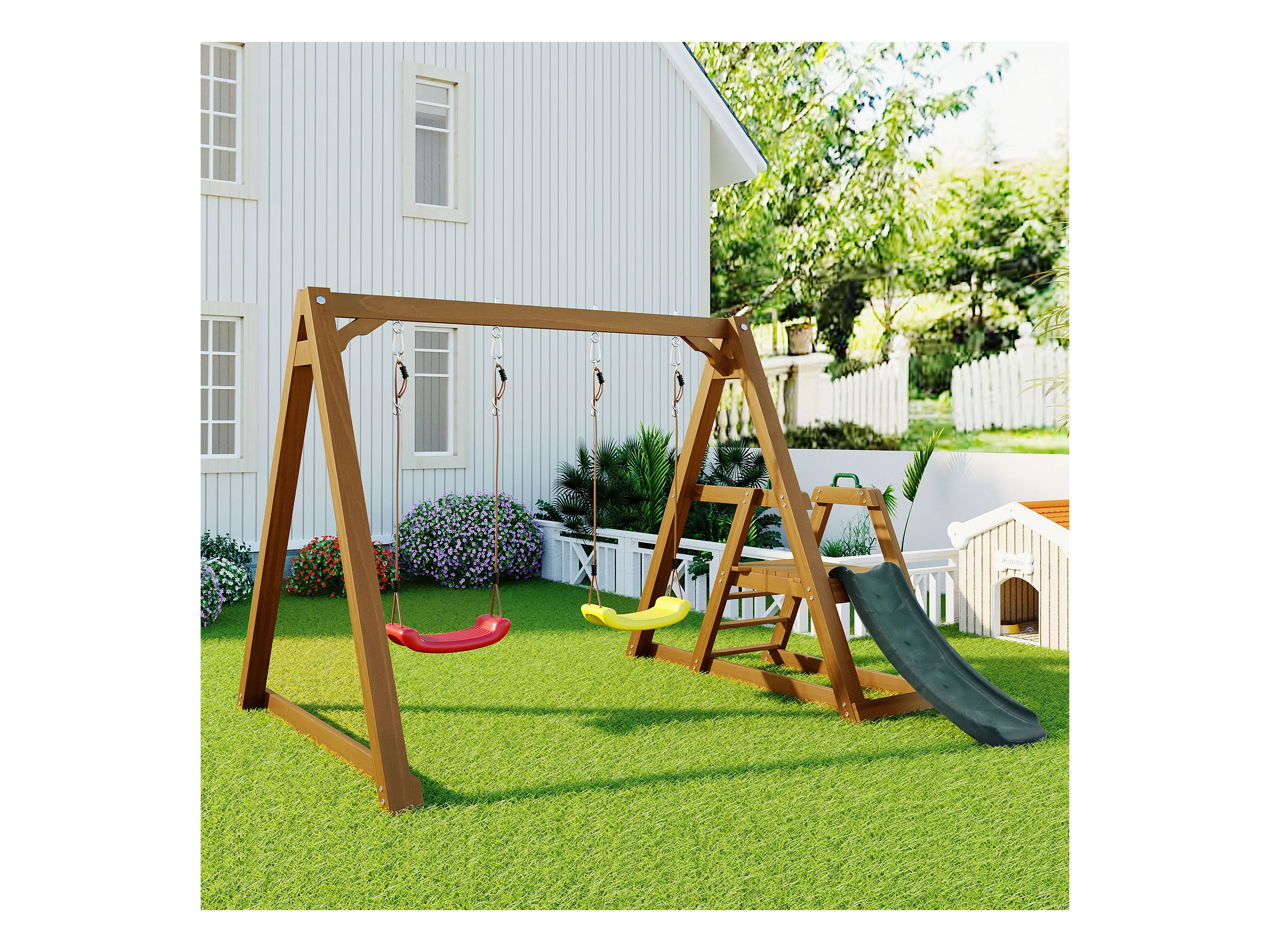 Balançoire 240x238.5x168.8cm Échelle Balançoire en Bois 2 Sièges de Balançoire 1 Toboggan Matériel Bois Couleur Naturelle