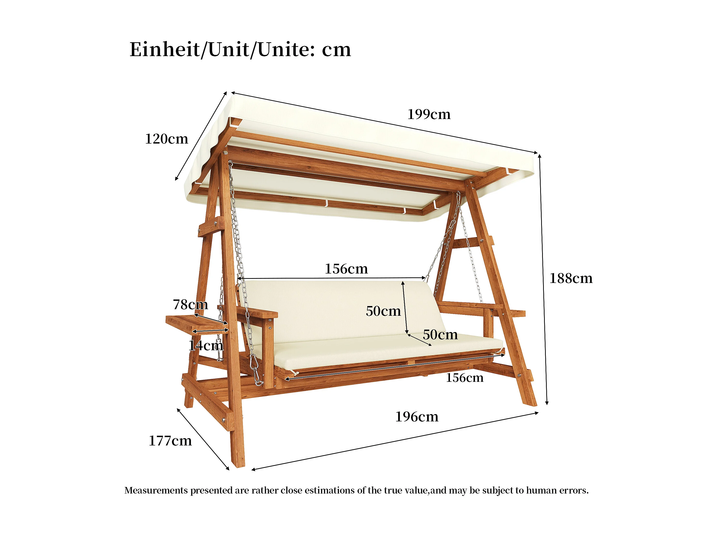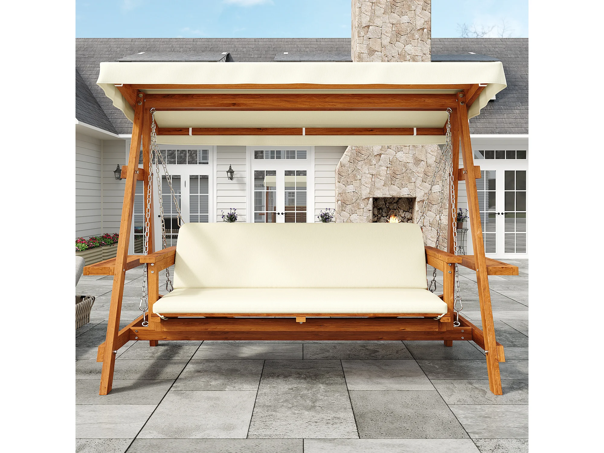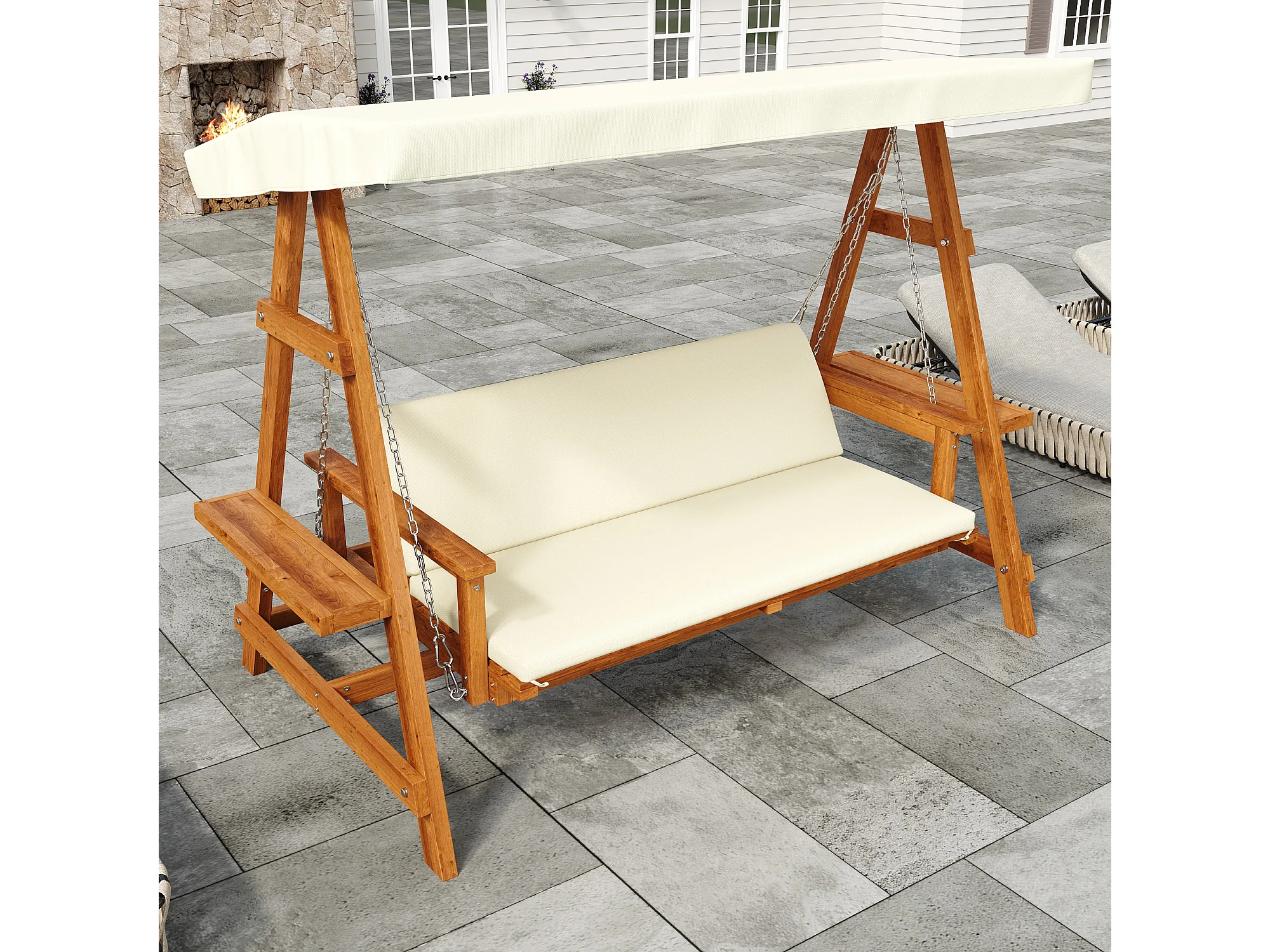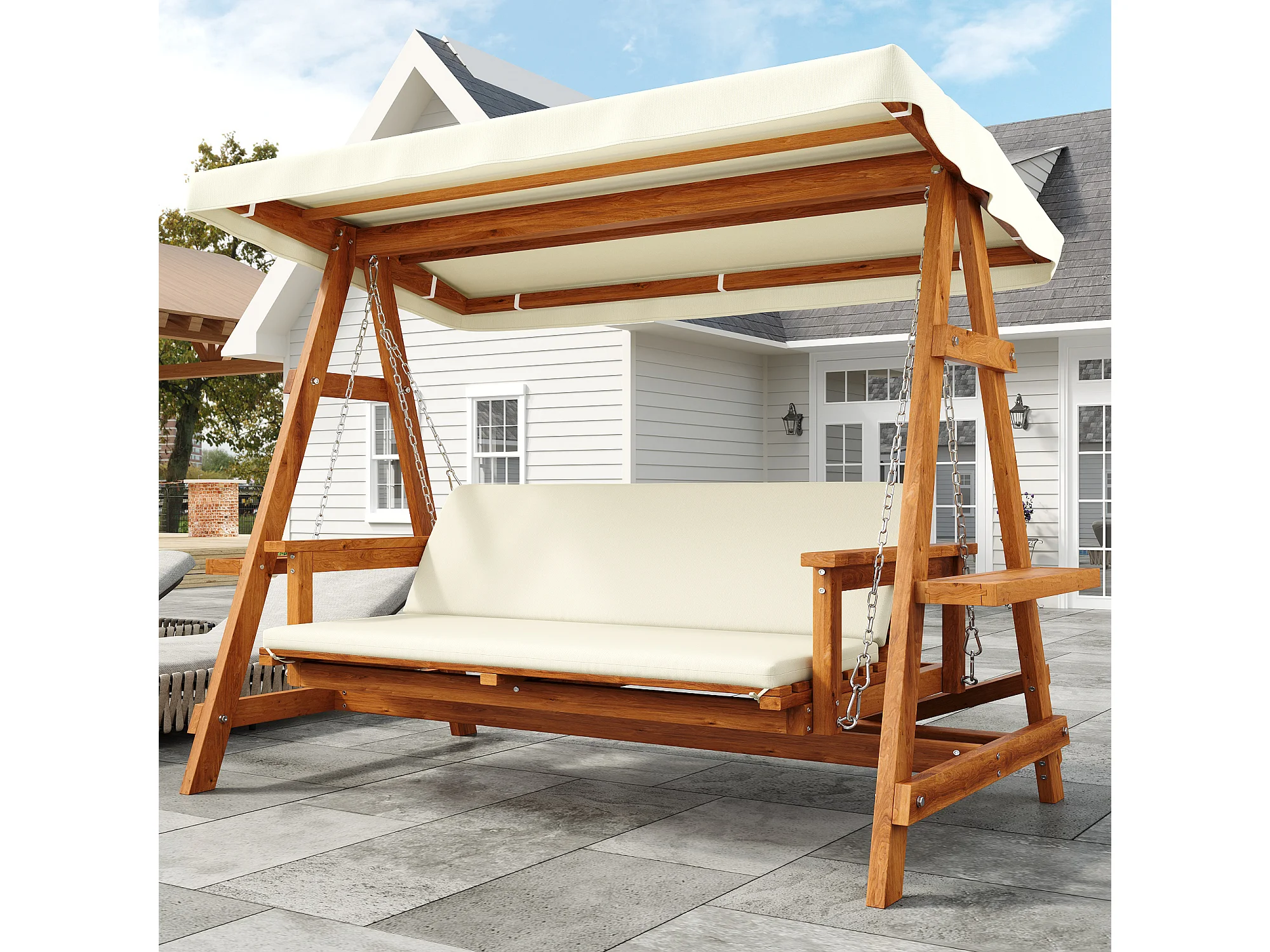 Balançoire mobilier de jardin robuste - avec coussins + toit - pour jardin et terrasse - bois - naturel