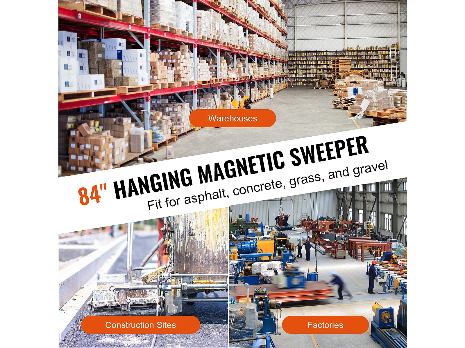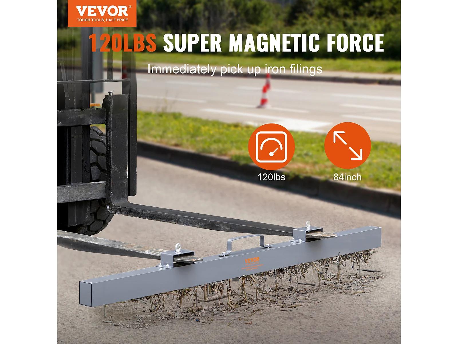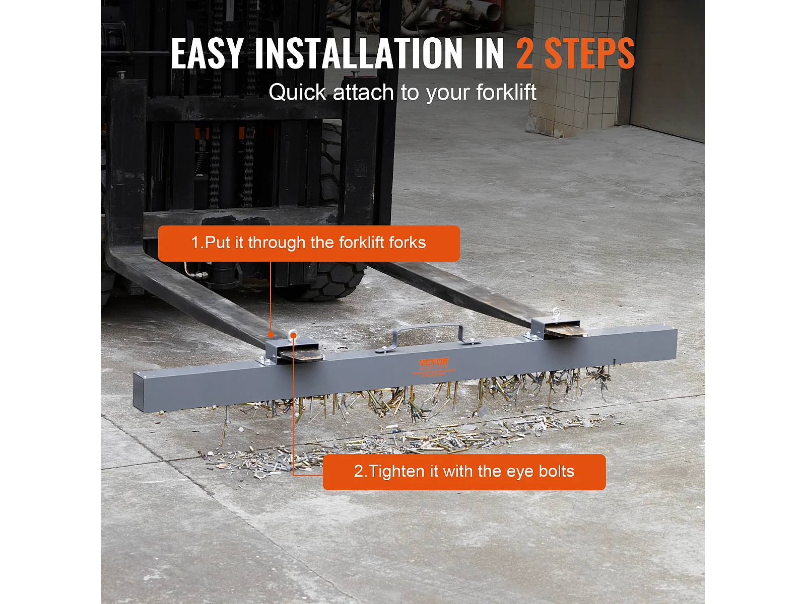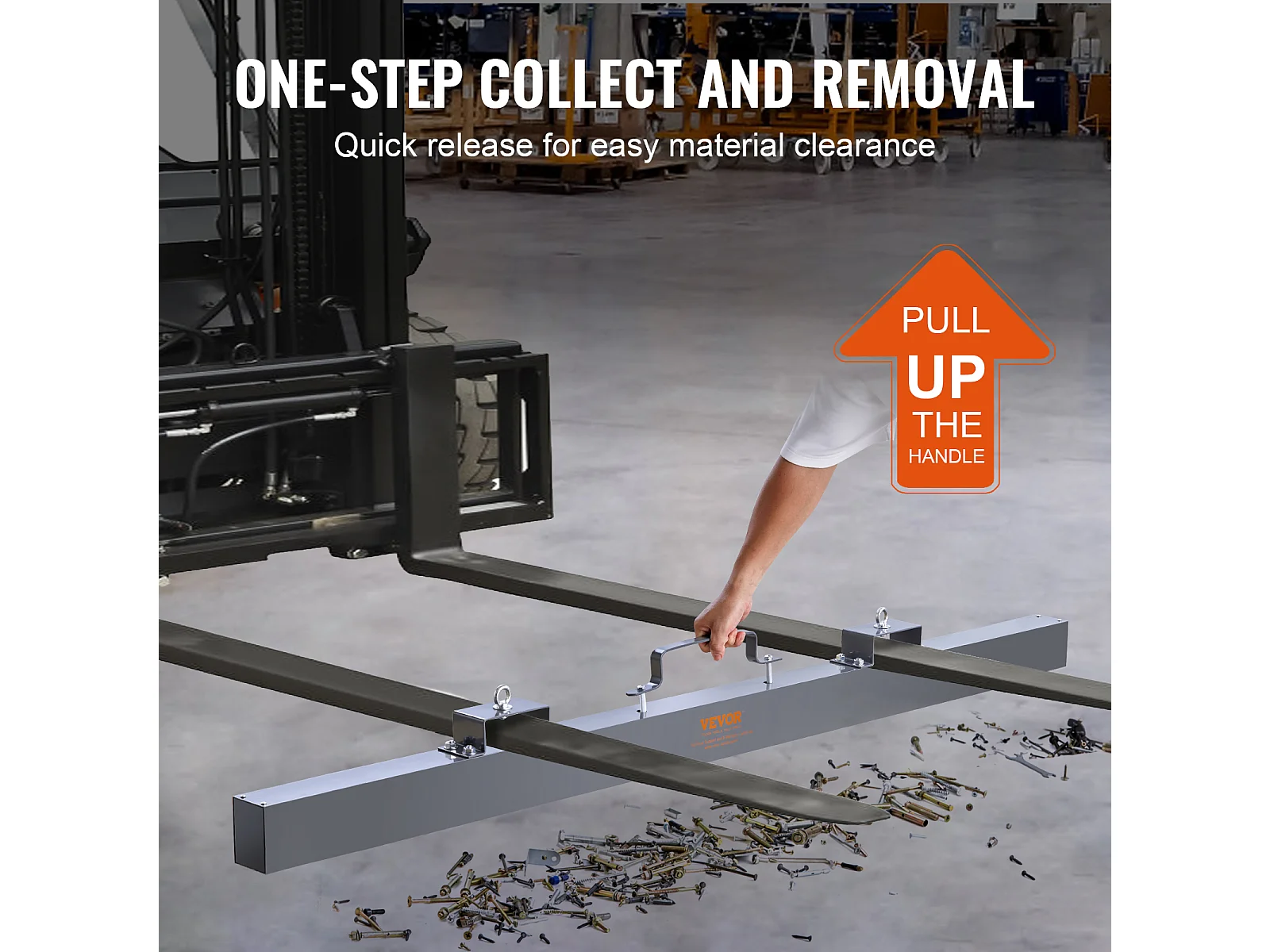 Balayeuse Magnétique, SucceBuy Balayeuse Magnétique de 213 cm, Capacité de Levage de 54,4 kg, Accessoire pour Chariot Élévateur, Utilisation Extérieure