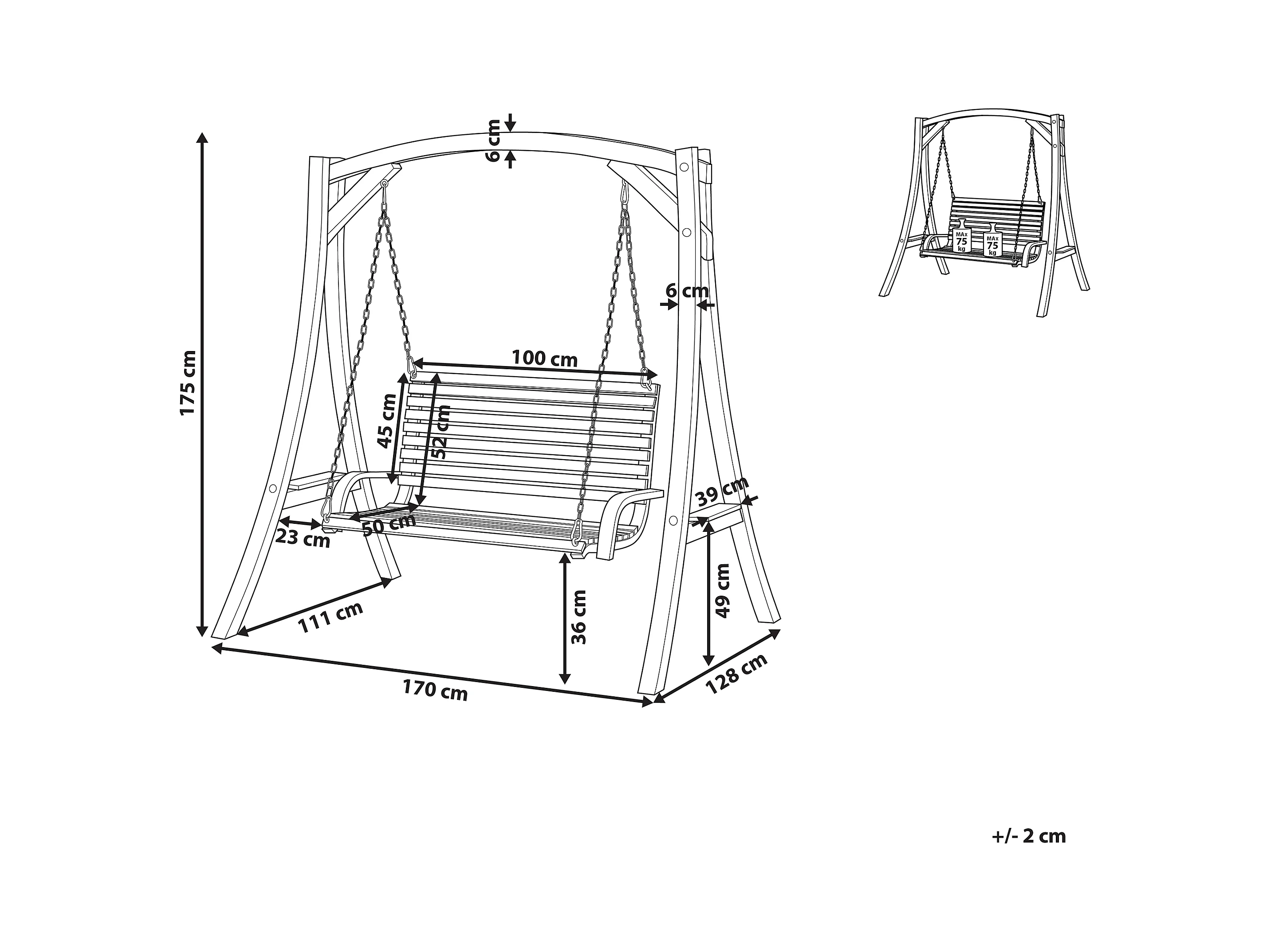 Banc de balançoire de jardin chaînes en métal bois massif sapin