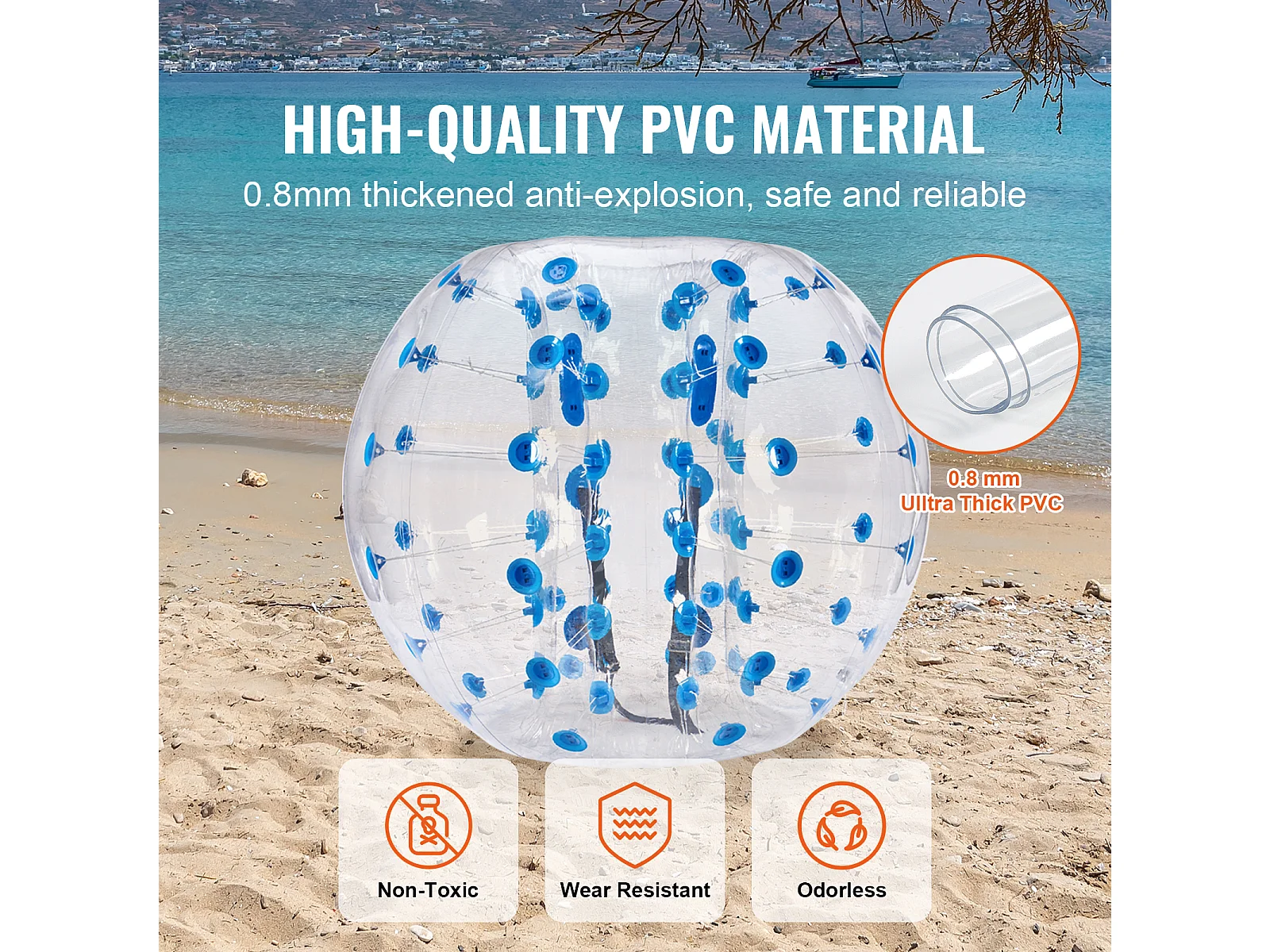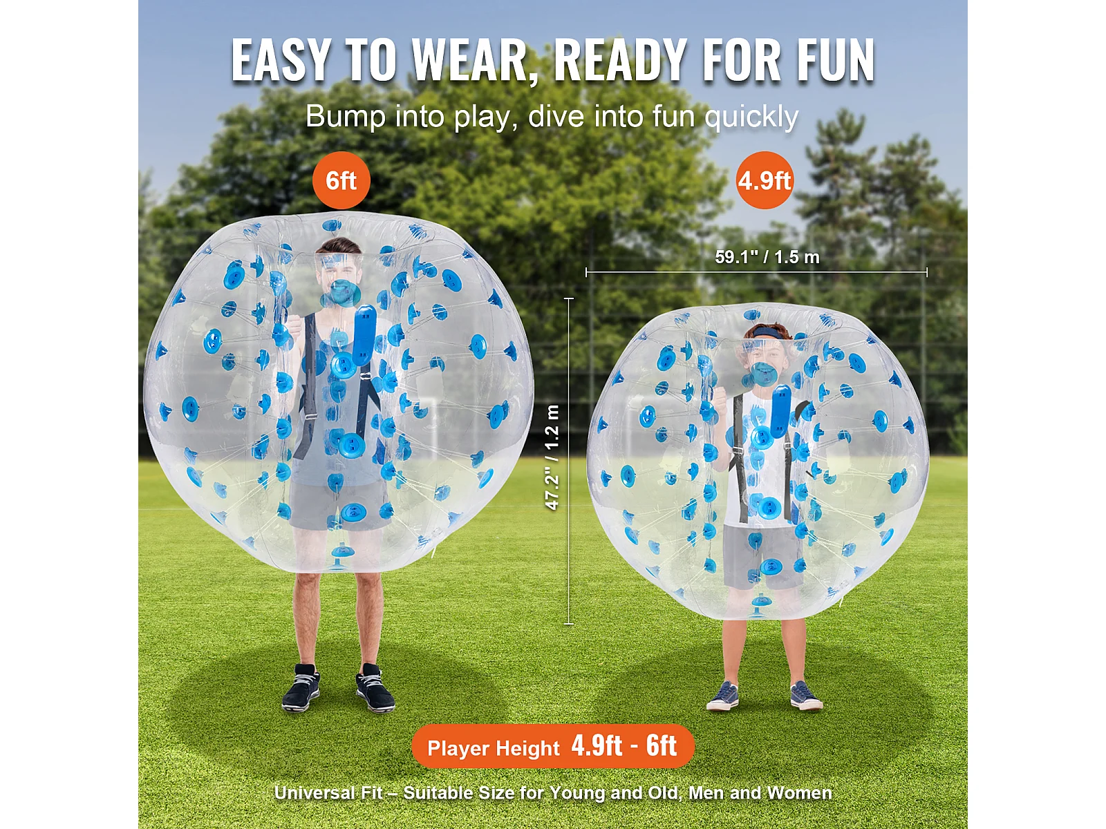 Ballon Pare-Chocs Gonflable SucceBuy (1 Pièce) 1,2 m, Ballon à Bulles en PVC Durable de 0,5 mm d'Épaisseur pour les Jeux d'Équipe en Plein Air