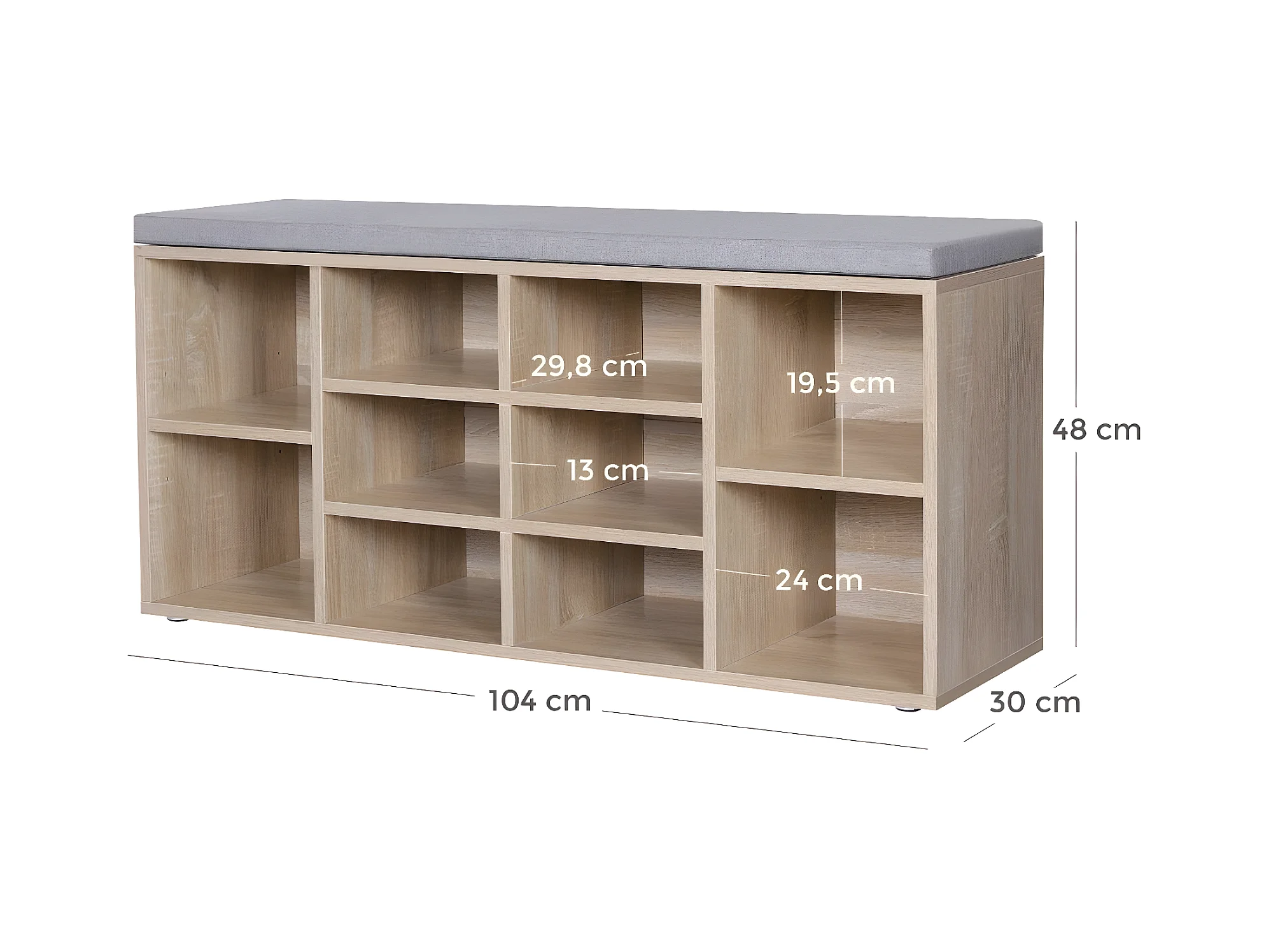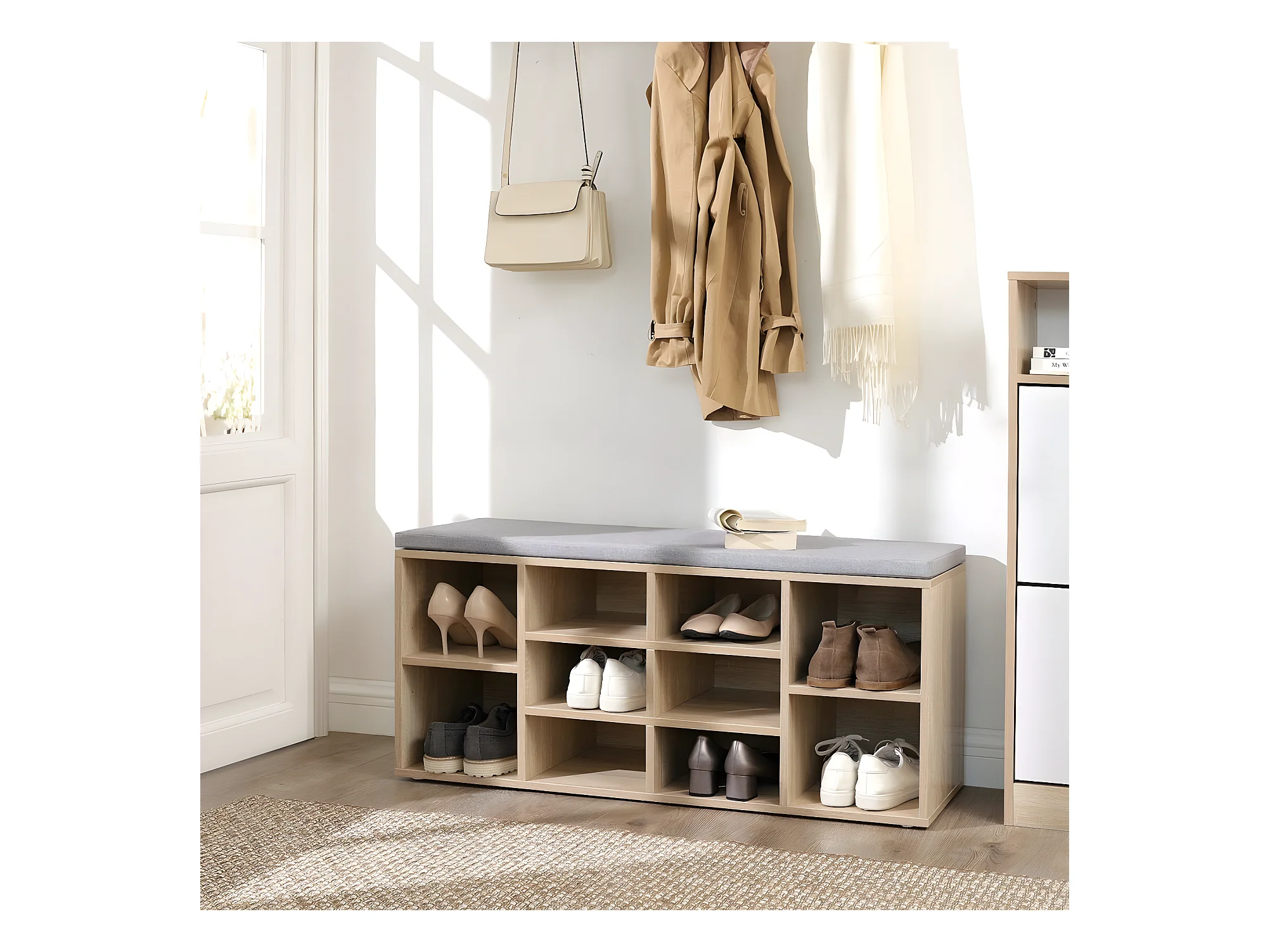 Banc à Chaussures 10 Niches Décor Bois - L104 cm