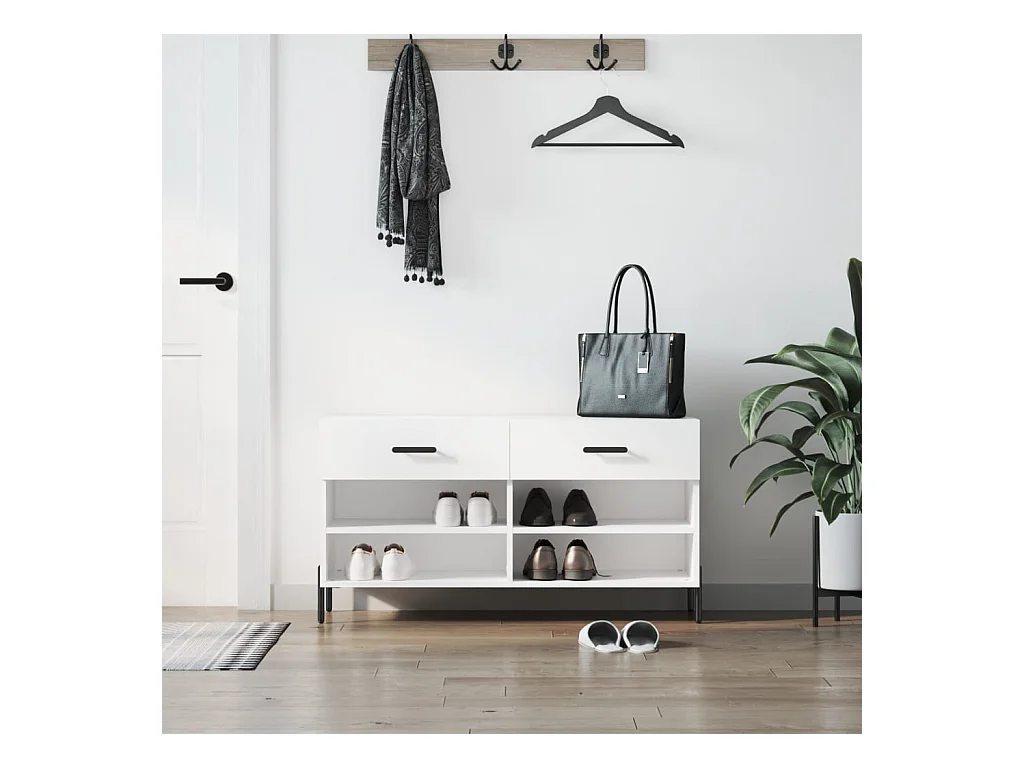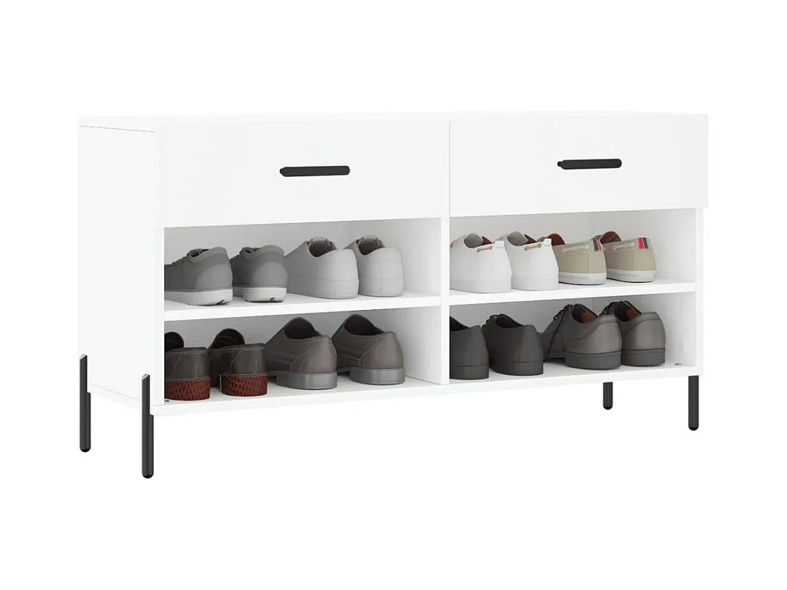 Banc à chaussures blanc 102x30,5x45 cm bois d'ingénierie