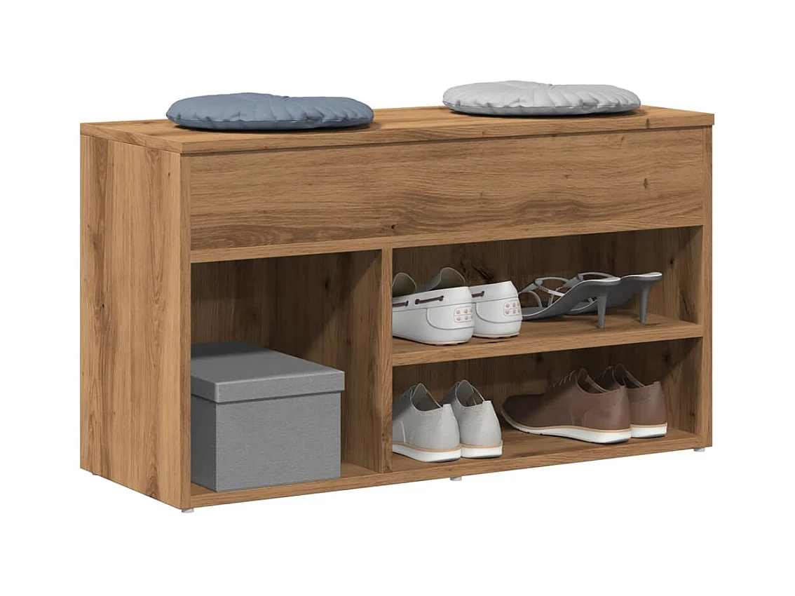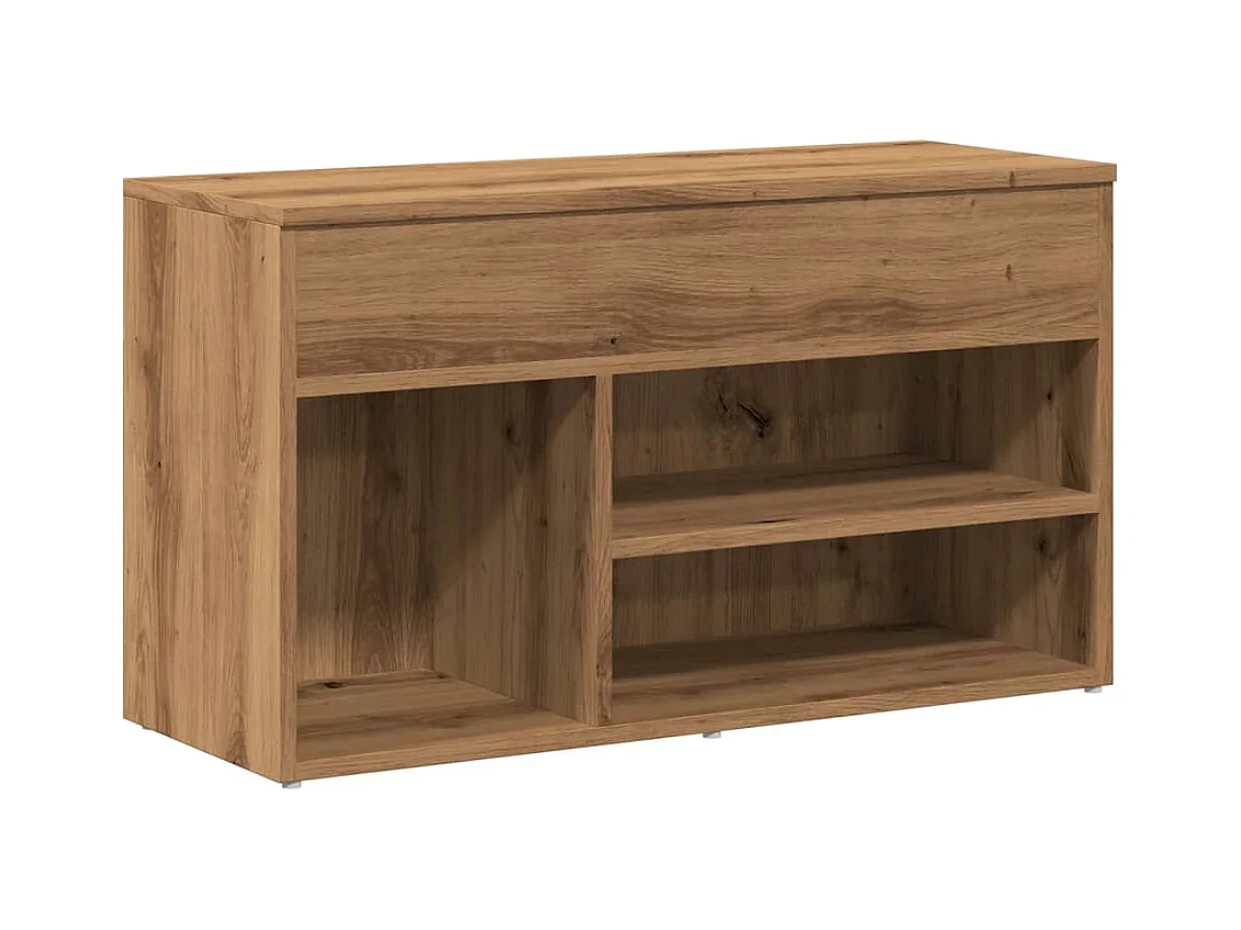Banc de rangement chêne artisanal 102x42x45cm bois d'ingénierie