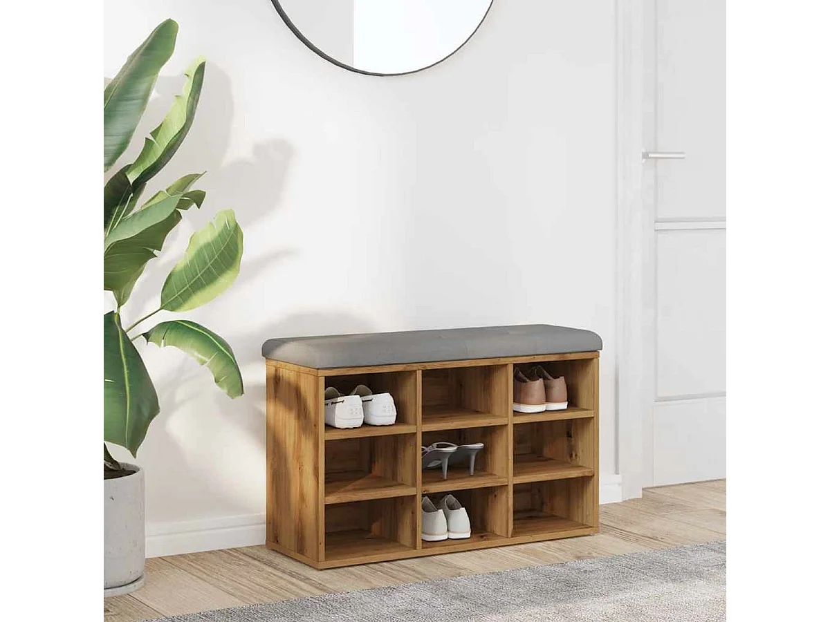 Banc à chaussures chêne artisanal 82x32x50 cm bois d'ingénierie
