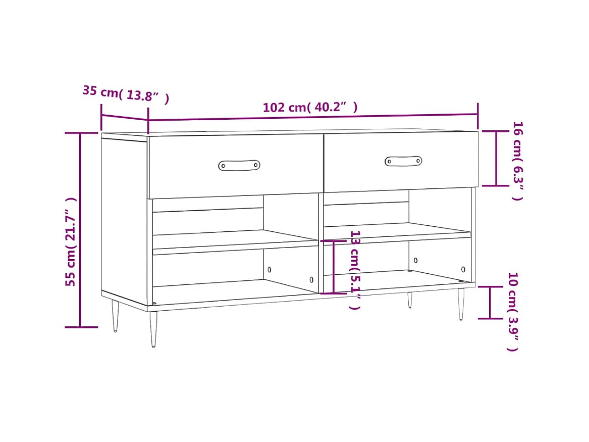 Armoire à chaussures Chêne sonoma 102x35x55cm Bois d'ingénierie