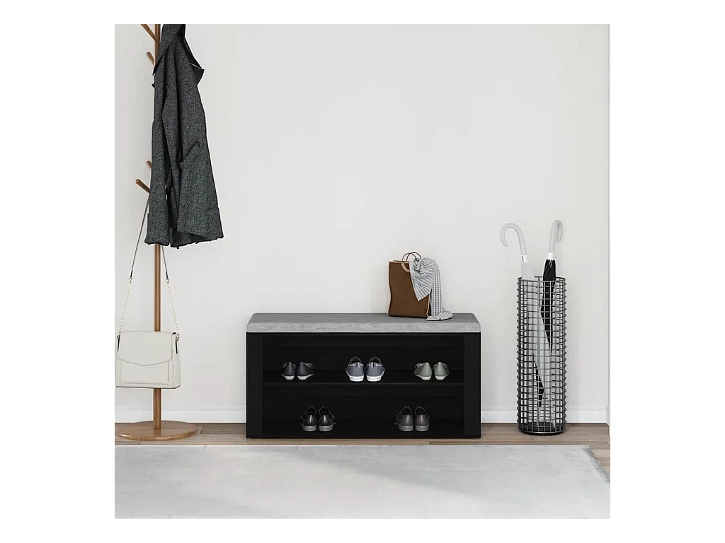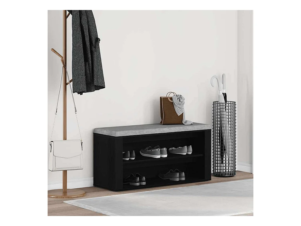 Banc à chaussures noir 102x30,5x45 cm bois d'ingénierie