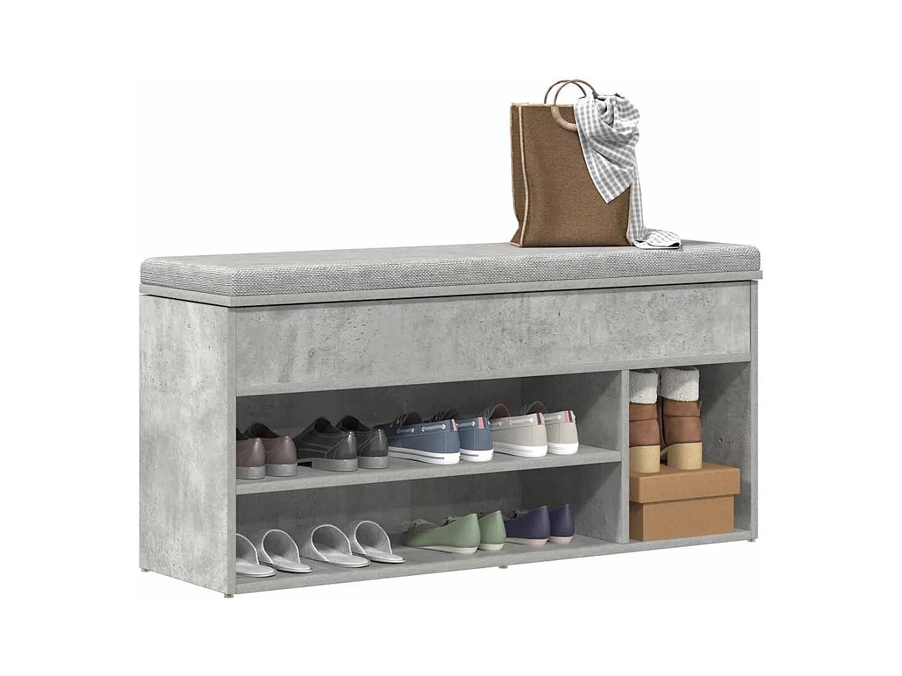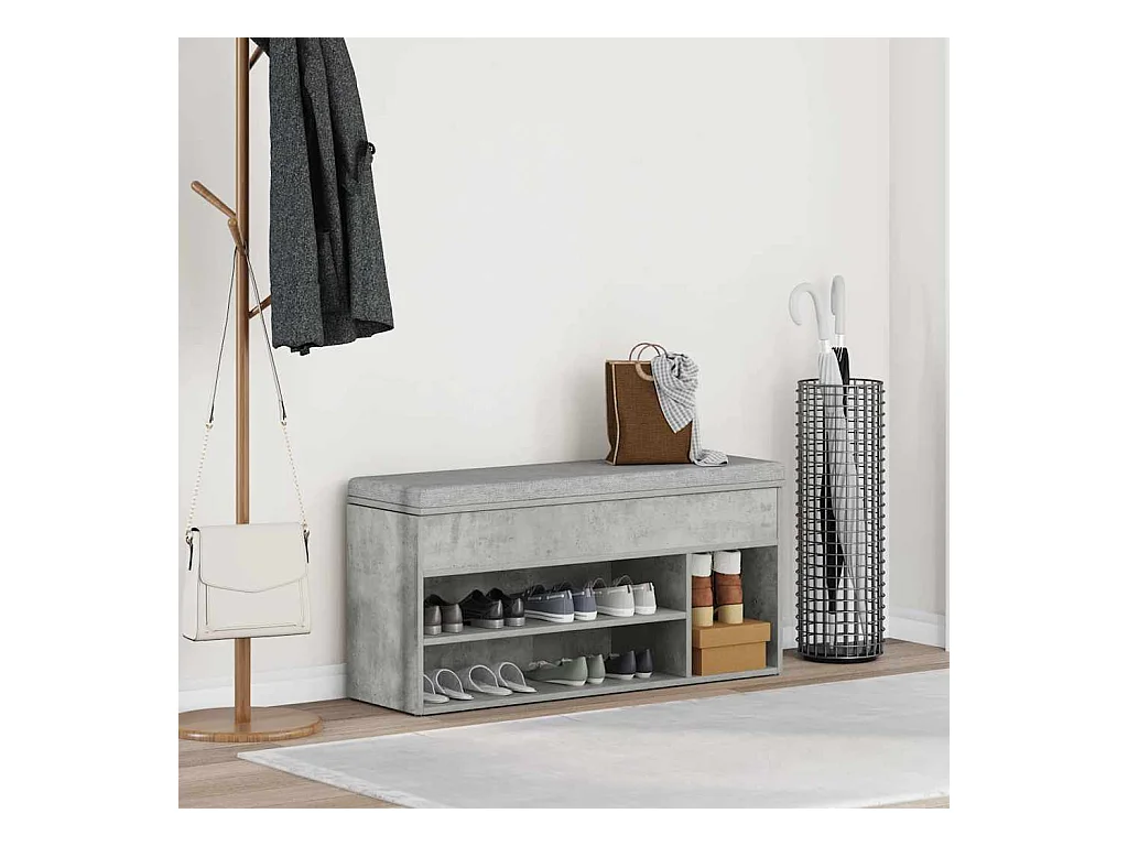 Banc à chaussures gris béton 102x32x50 cm bois d'ingénierie