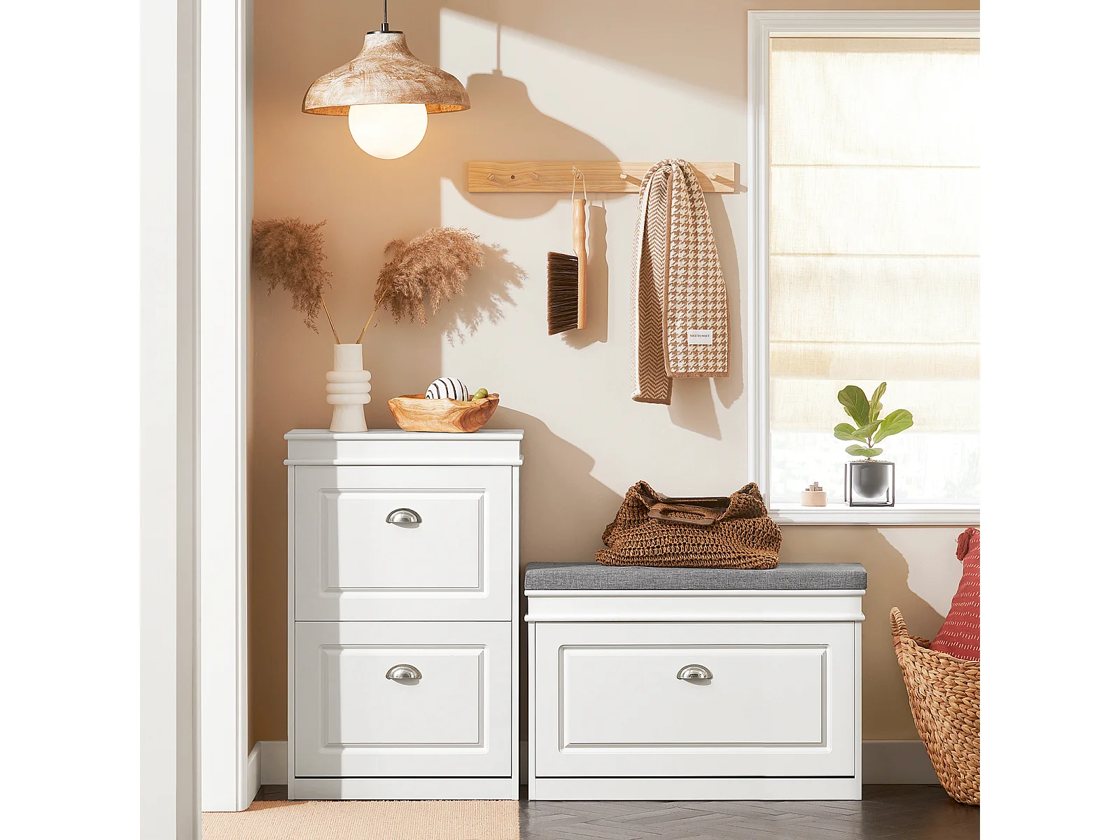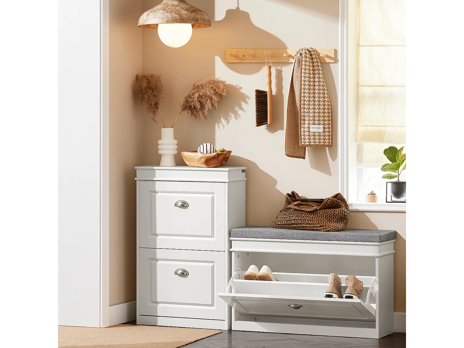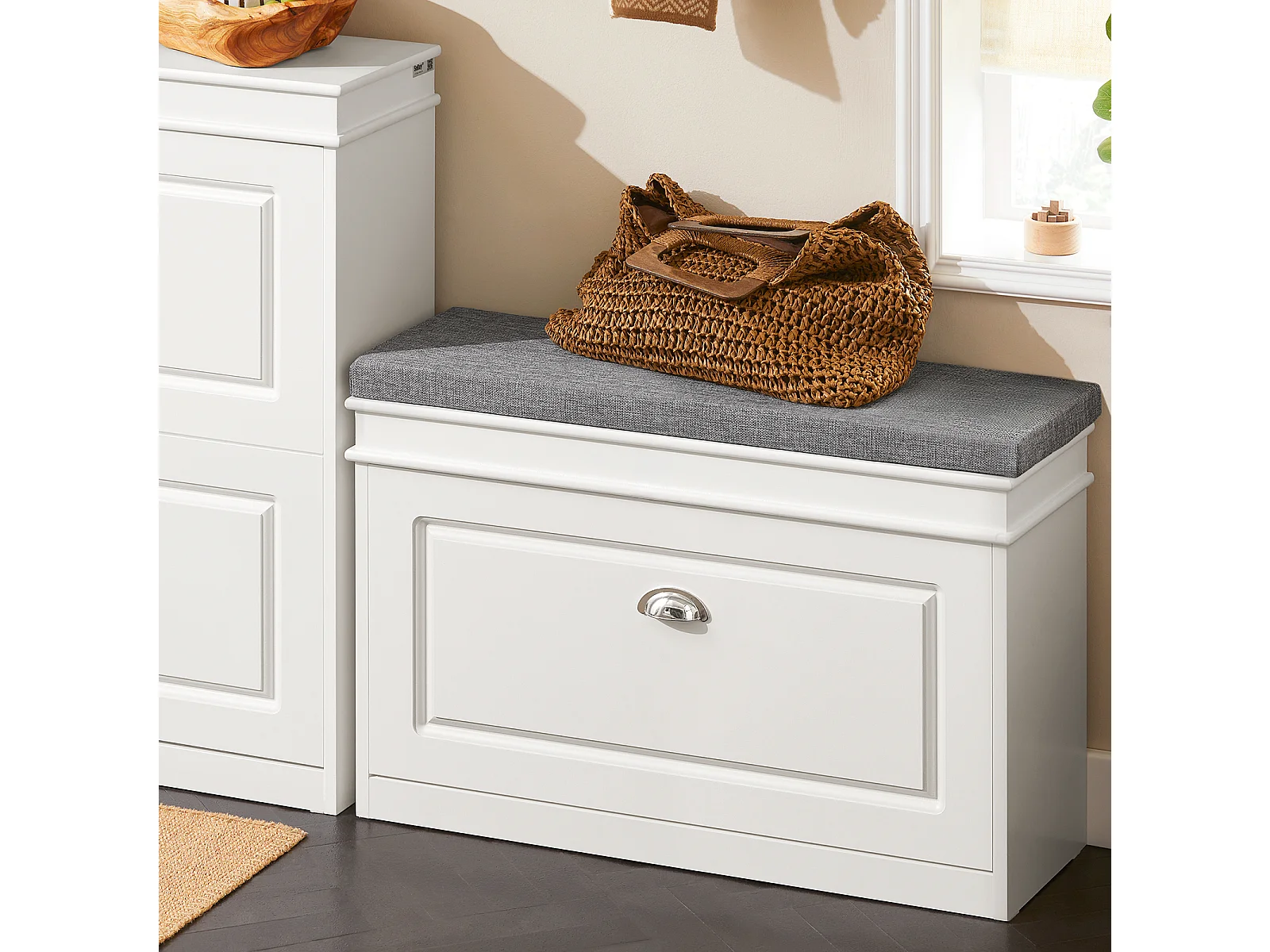 Banc À Chaussures Meuble À Chaussures Avec Assise Coussin Rembourré, 75x24x51 Cm, Fsr82-l-w