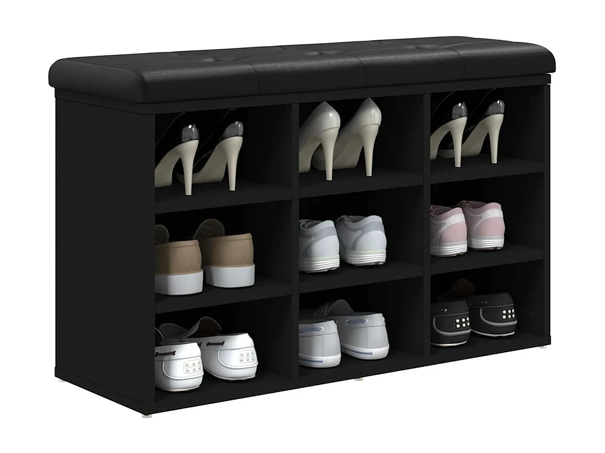 Banc à chaussures noir 82x32x50 cm bois d'ingénierie