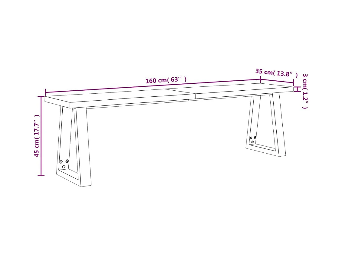 Banc avec bord vivant 160 cm bois d'acacia massif