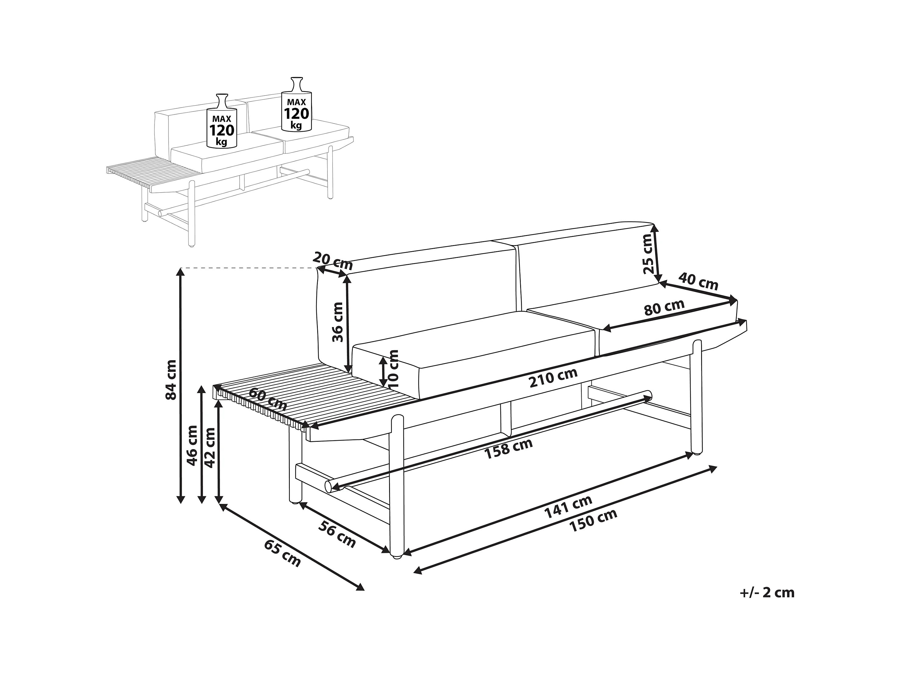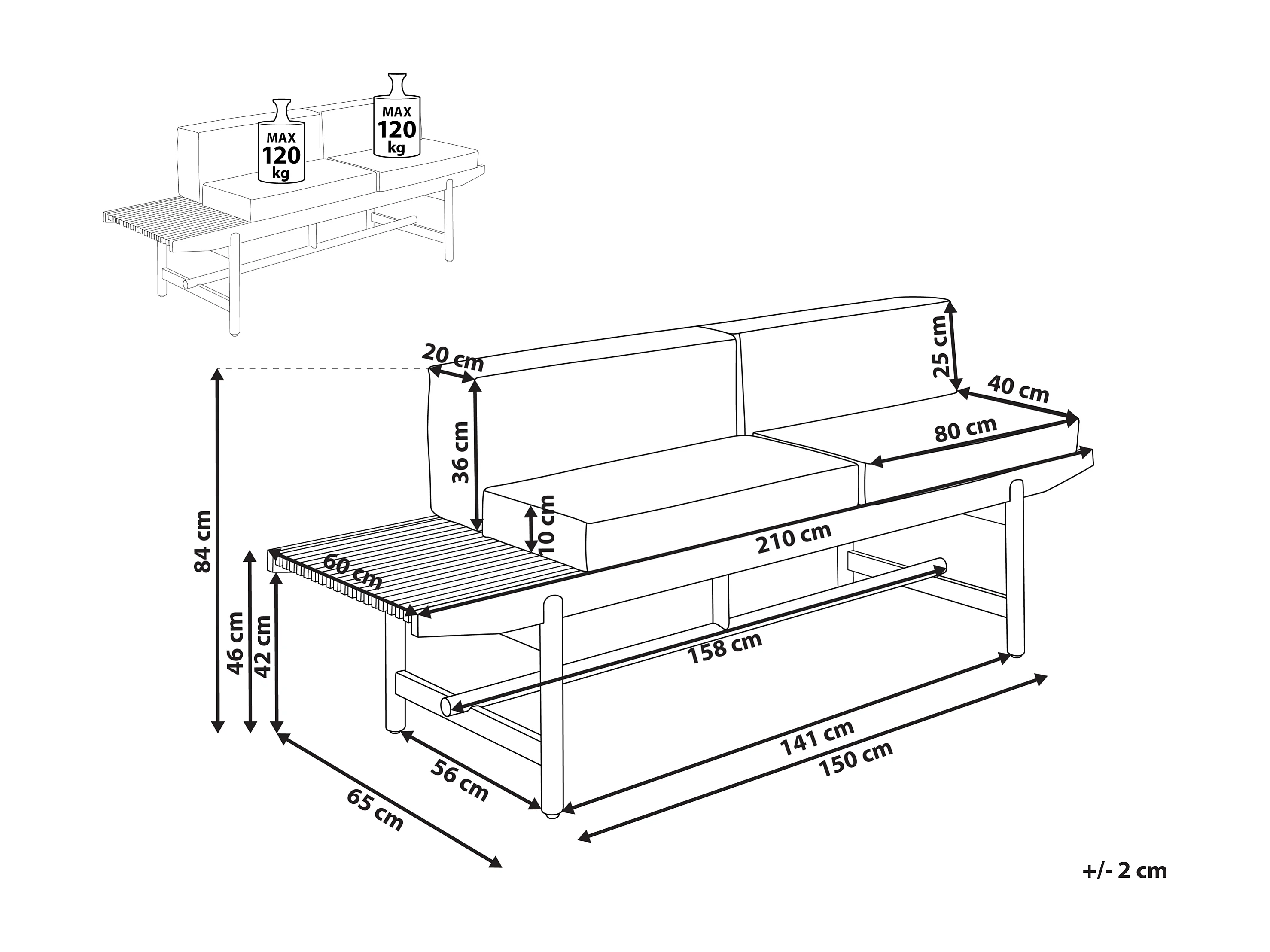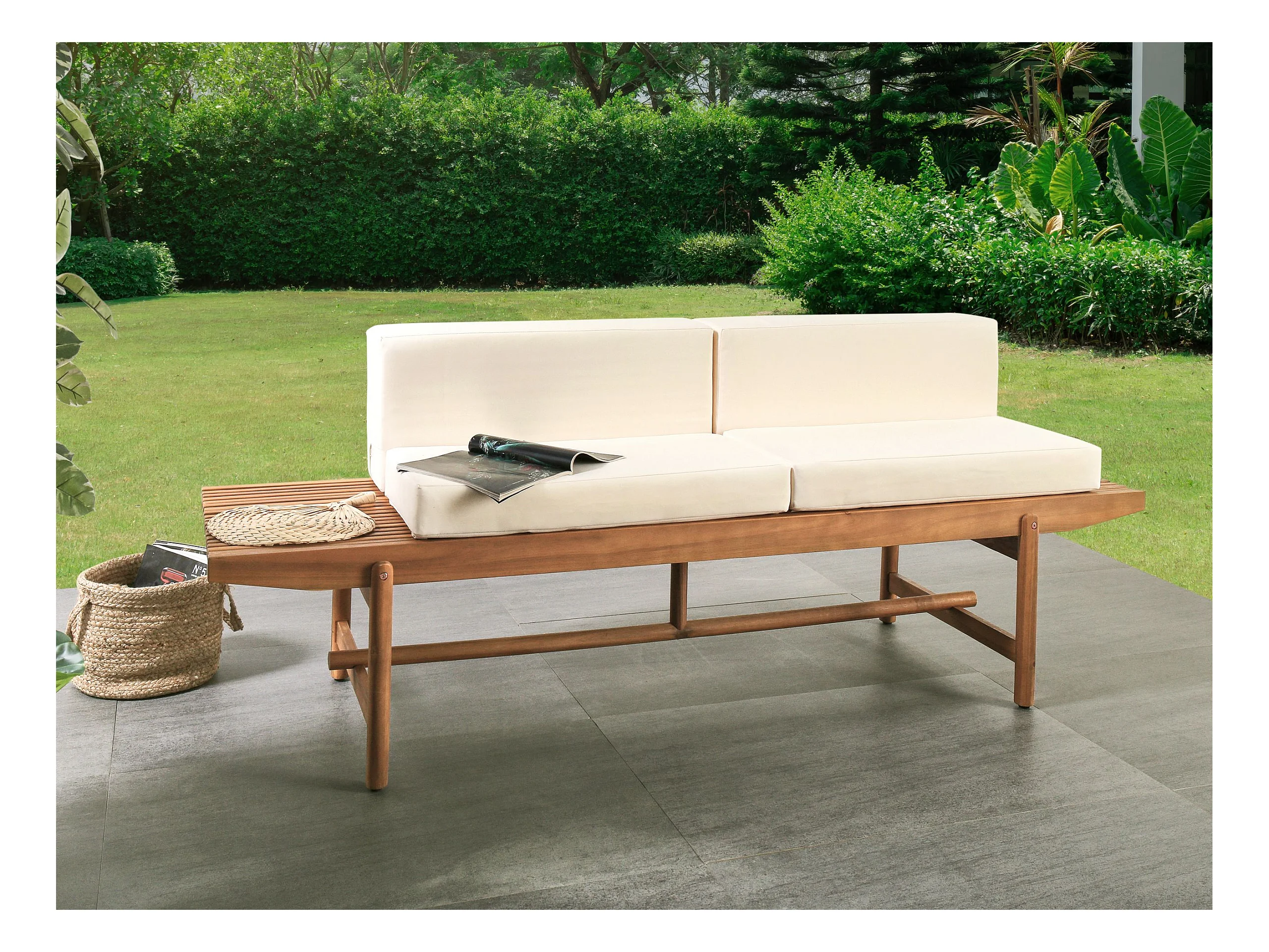 Banc avec coussin d'assise GIAVENO 210 cm Acacia Blanc cassé