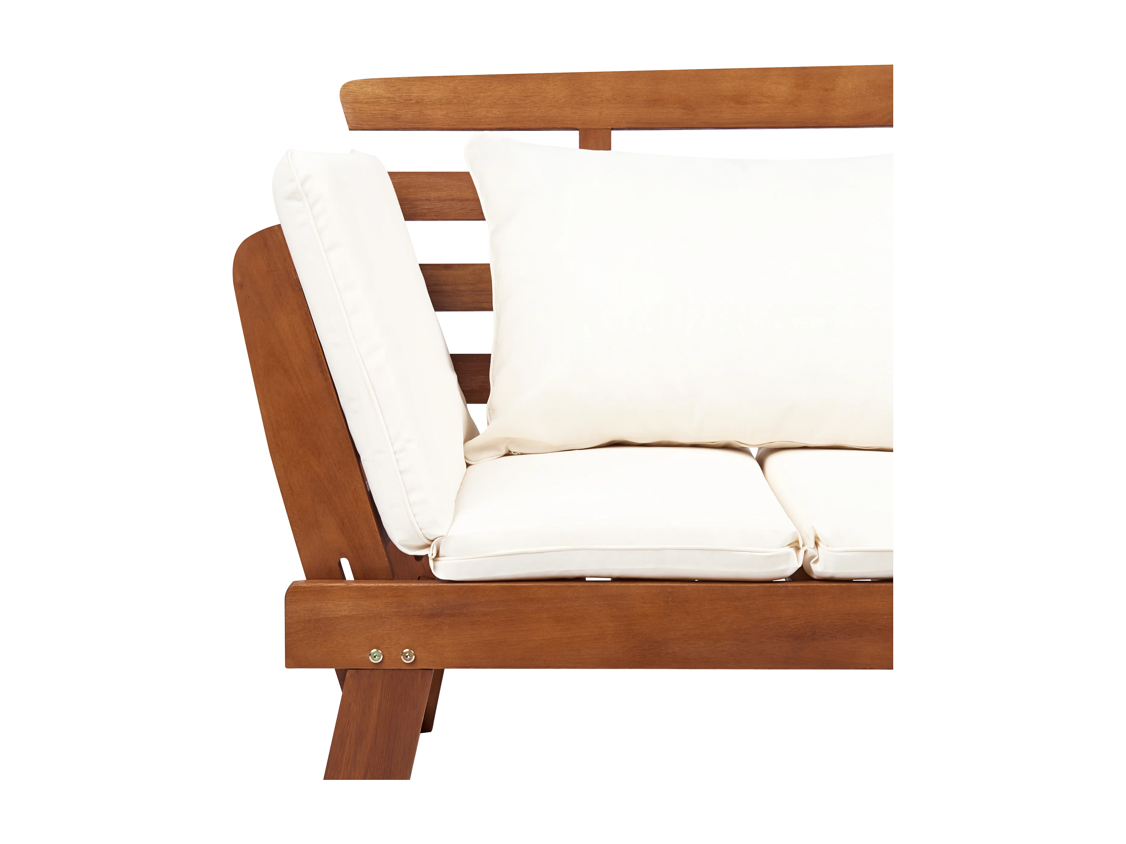 Banc avec coussin d'assise PORTICI 210 cm Bois d'eucalyptus Marron foncé/blanc