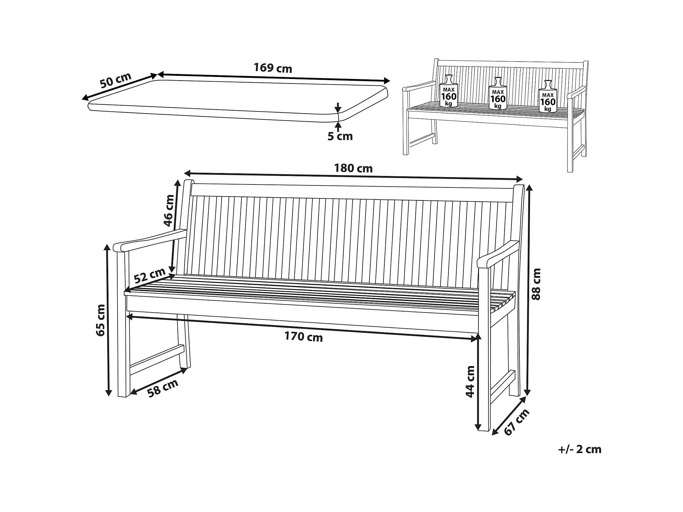 Banc avec coussin d'assise VIVARA 180 cm Bois d'acacia certifié Rouge foncé