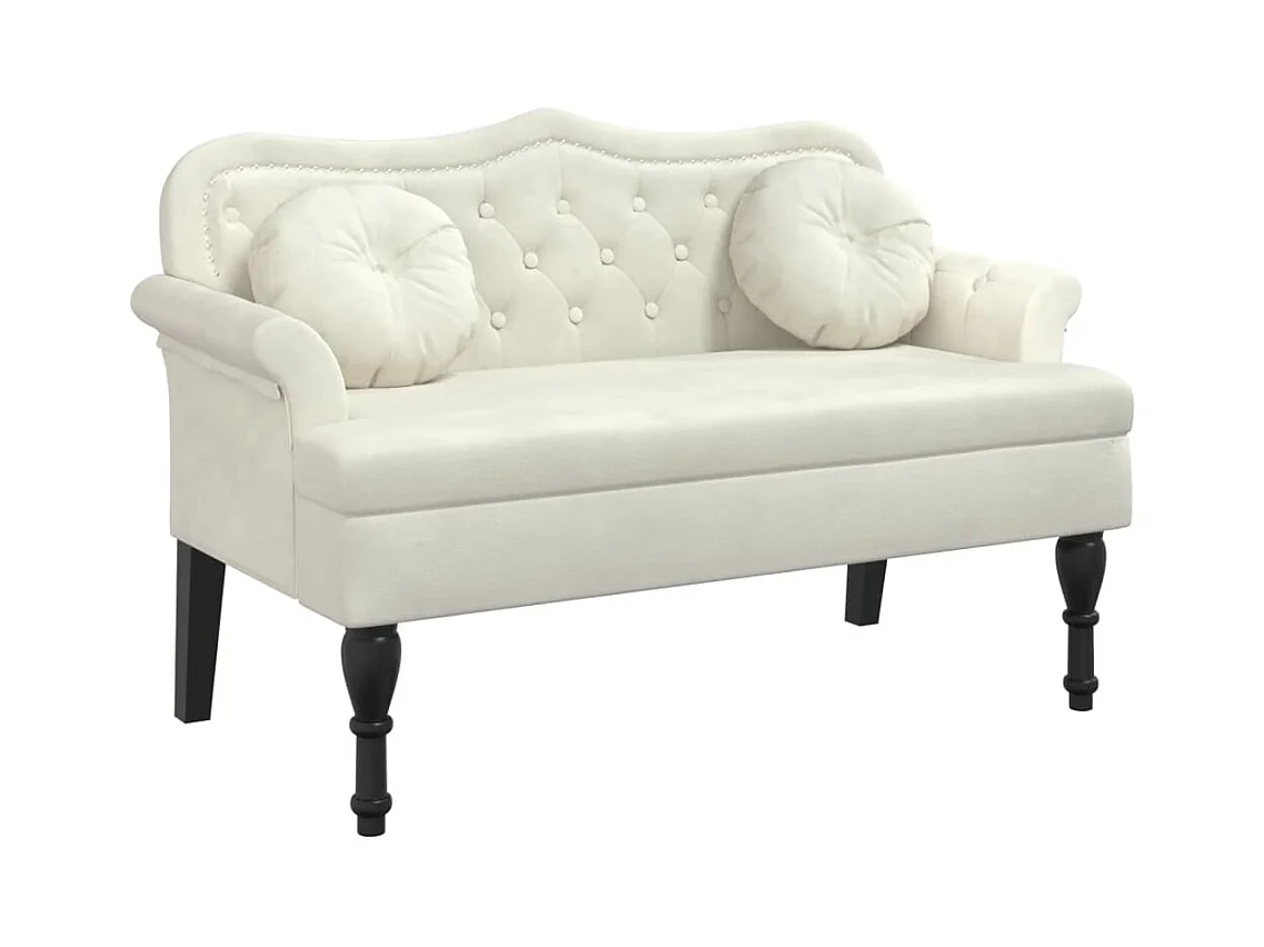 Banc rembourré avec accoudoirs, design vintage, pieds bois massif, beige (117x40x58cm)