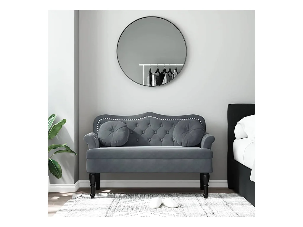 Banc avec coussins gris foncé 120,5x65x75 cm velours
