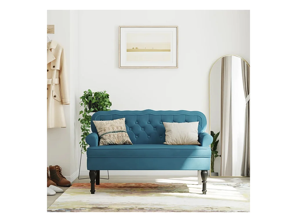 Banc avec dossier bleu 119,5x64,5x75 cm velours -ASAF34631