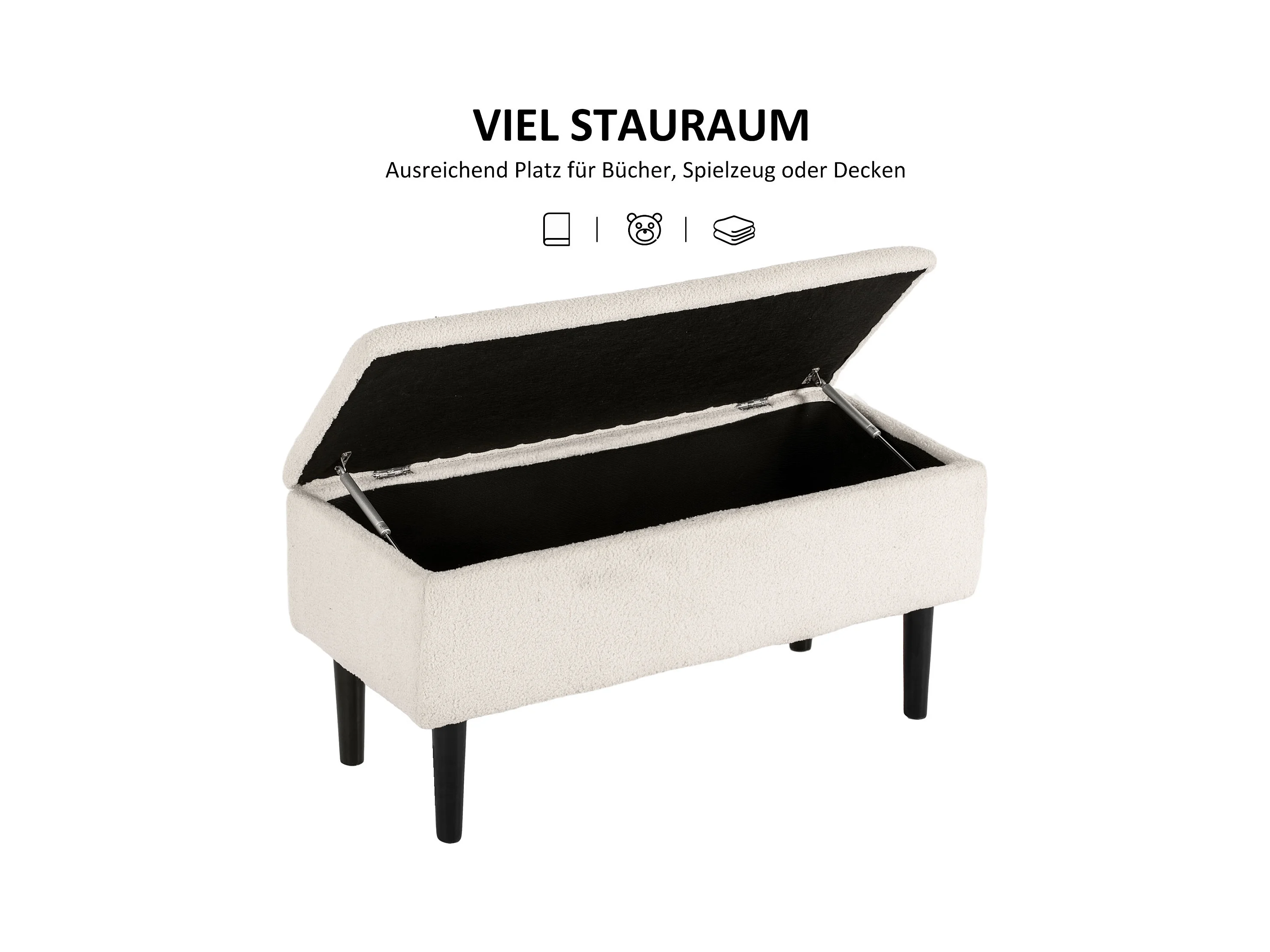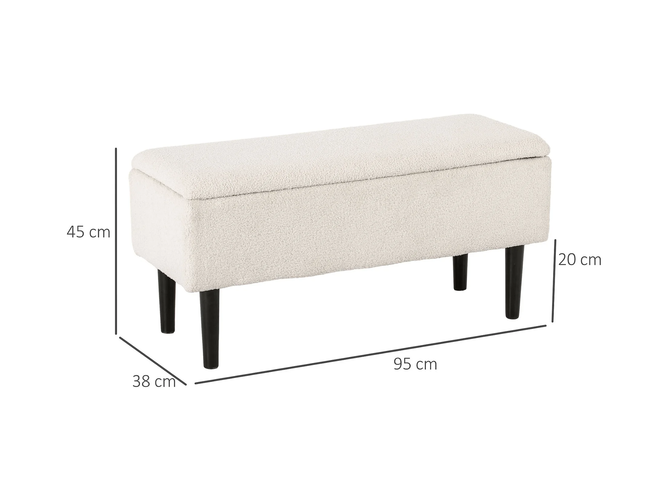 Banc rembourré avec espace de rangement,banc coffre,bois d'hévéa,blanc crème,100x40x44cm
