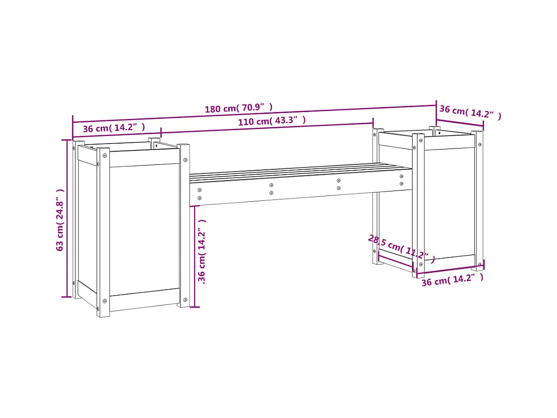 Banc avec jardinières 180x36x63 cm bois massif de douglas