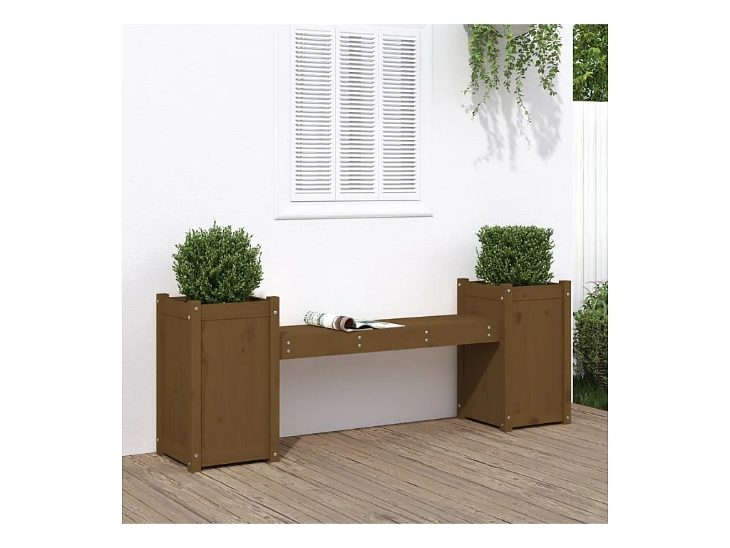Banc avec jardinières marron miel bois massif de pin PEWV96923