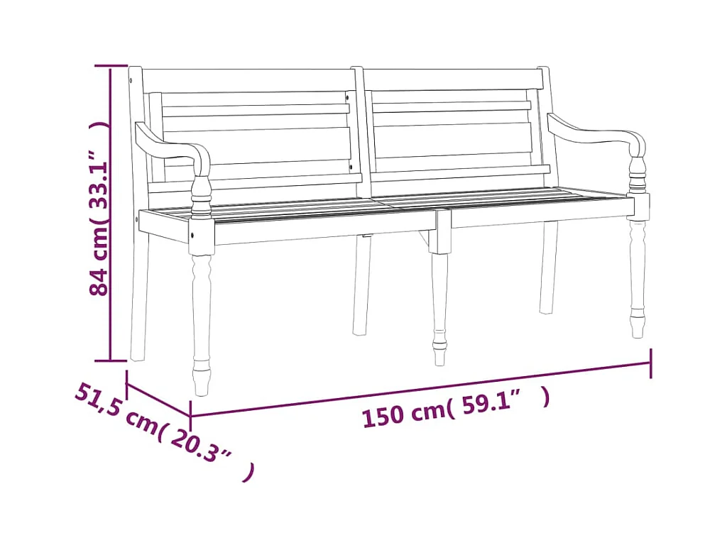 Banc Batavia avec coussin anthracite 150 cm Bois de teck massif