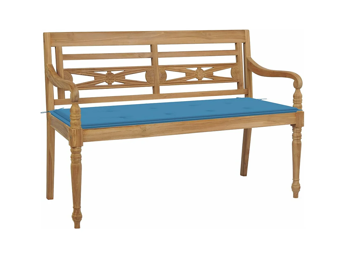 Banc Batavia avec coussin bleu 120 cm Bois de teck massif