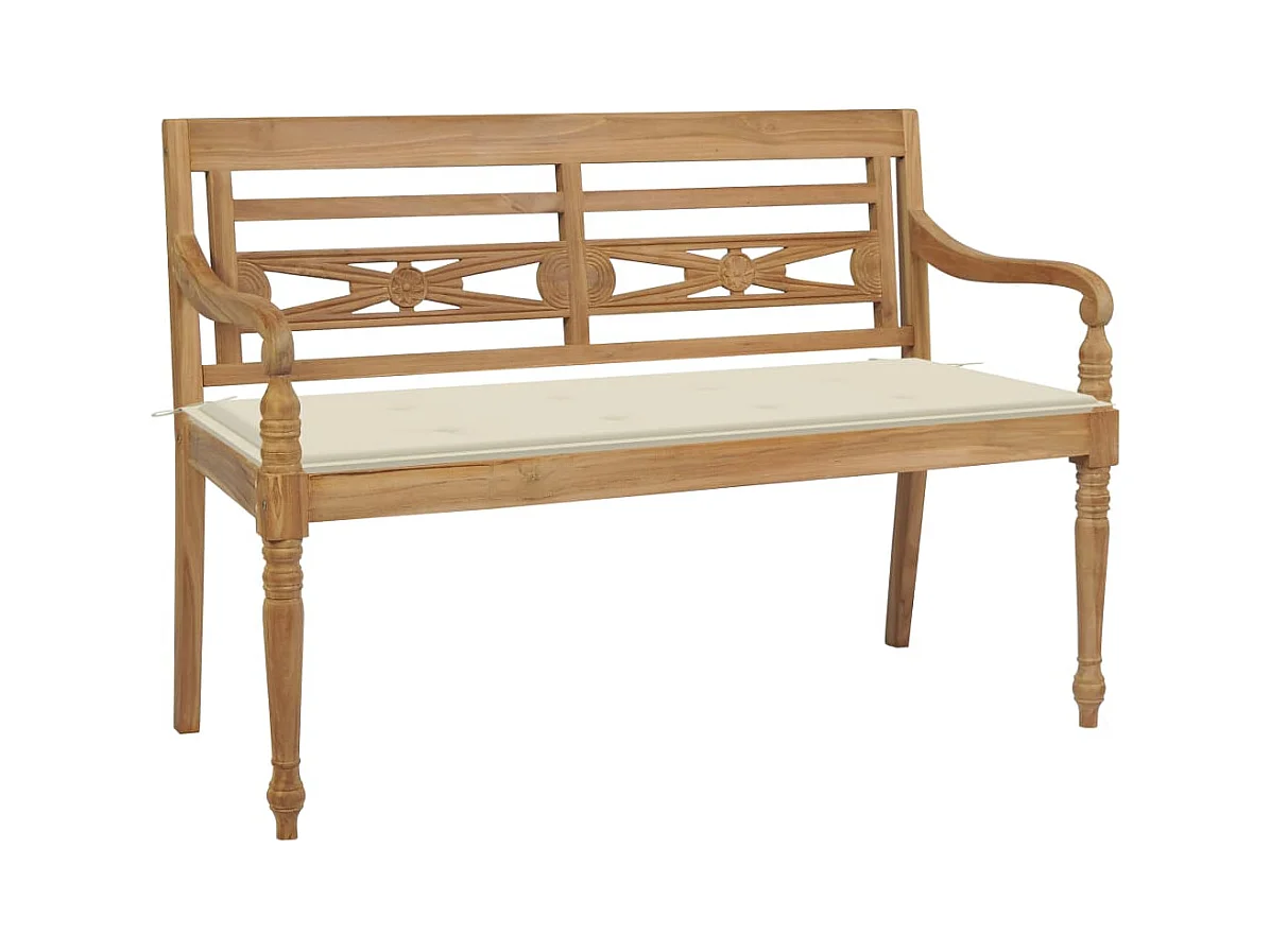 Banc Batavia avec coussin crème 120 cm Bois de teck massif