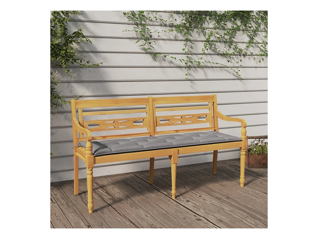 Banc Batavia avec coussin gris 150 cm Bois de teck massif