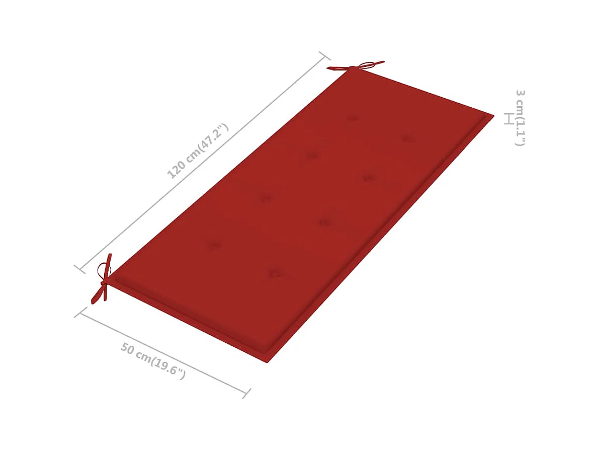 Banc Batavia avec coussin rouge 120 cm Bois de teck massif