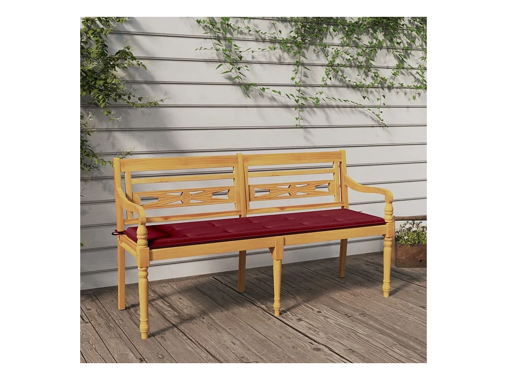 Banc Batavia avec coussin rouge bordeaux 150cm Bois teck massif