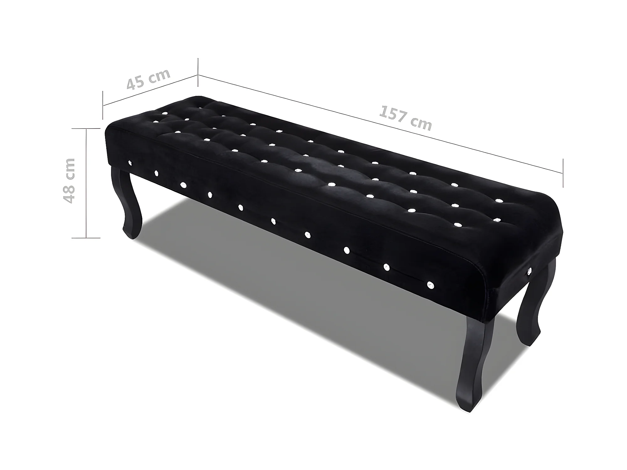 Banc chic noir Tissu velours avec boutons en cristal -ASAF99387